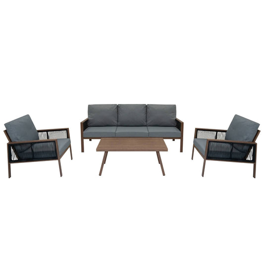 Aluminium 4 Piece Sofa Set with Black Rattan Storage Box - Wood Effect