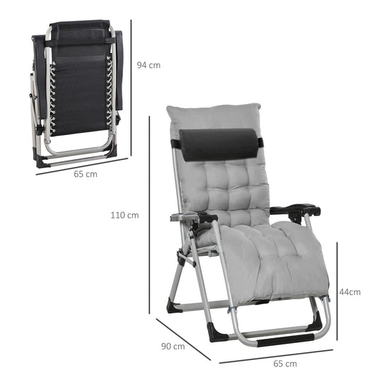 2-Piece Reclining Zero Gravity Chair Metal Frame Folding Garden Sun Lounger with Cushion Headrest Light Grey