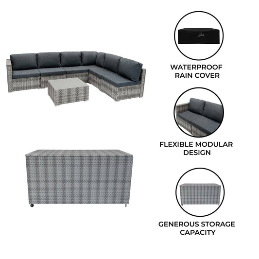Rattan Modular 7 Piece Furniture Set & 700L Storage Box - Grey