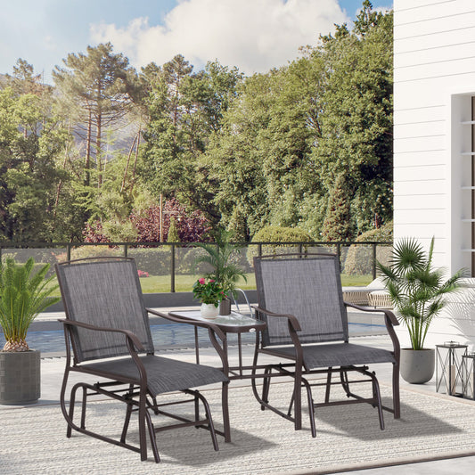 Garden Double Glider Rocking Chairs Metal Gliding Love Seat with Middle Table Conversation Set Patio Backyard Relax Outdoor Furniture Grey