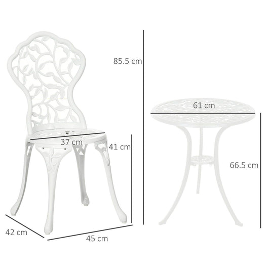3-Piece Aluminium Bistro Set Garden Furniture Dining Table Chairs Antique Outdoor Seat Patio Seater White