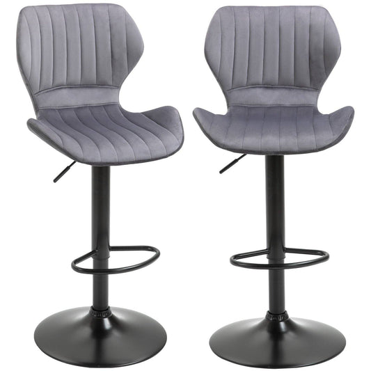 Homcom Bar Stool Set Of 2 Velvet-Touch Fabric Adjustable Height Swivel Counter Chairs With Footrest Grey