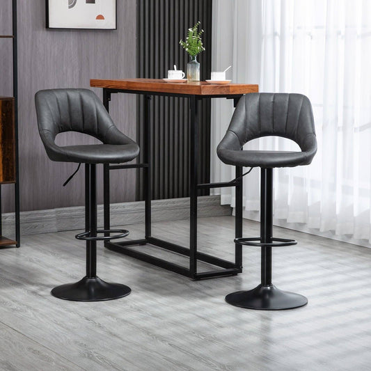 Barstools Set of 2 Adjustable Swivel Height Gas Lift PU Leather Counter Chairs with Footrest