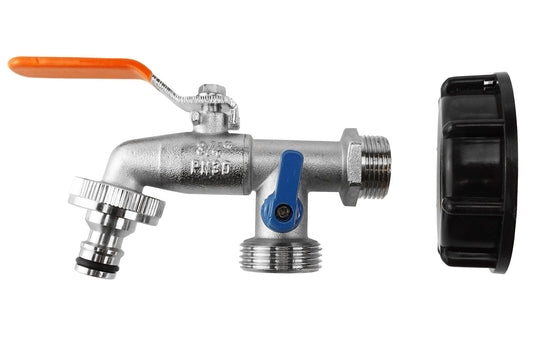 IBC 2” S60X6 Cap with Elbow Fitting, Quick Connector, Valve and Hose Connector