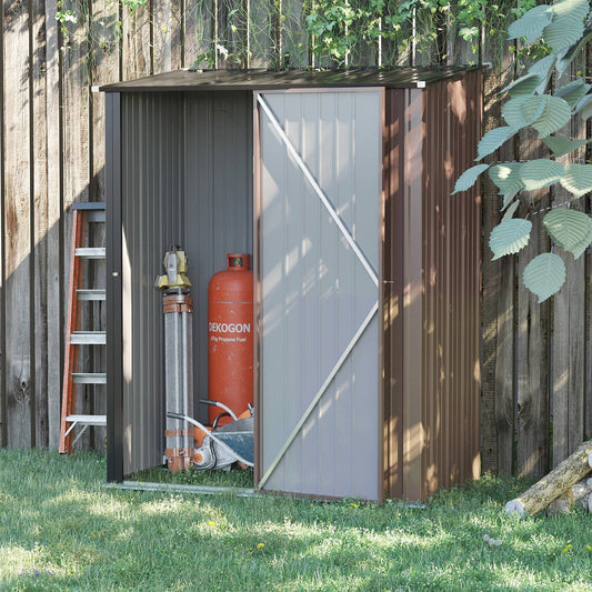 Galvanised 5.3 x 3.1' Single Door Pent Garden Store Steel Brown by Steadfast