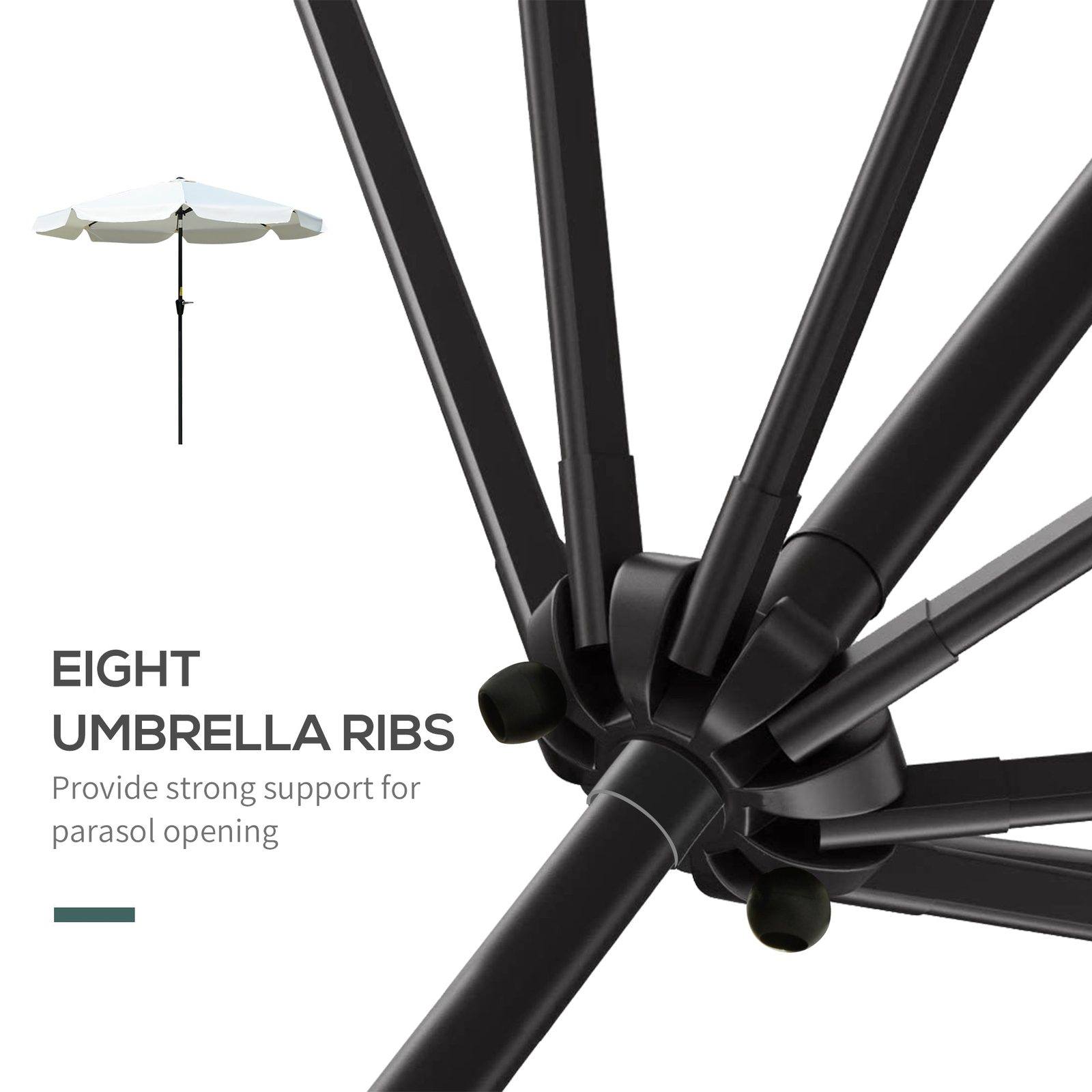 The Outsunny parasols umbrellas are an ideal choice to enjoy the shade in sunny days. It tilts to many different positions, so you can keep protection no matter where you sit. The 2.66m diameter sunshades for garden cover between 4-6 people, so you can enjoy your garden with family and friends. It covers your party from the rain and sunlight, giving you cover as you dine outdoors. Base not included - our Outsunny standard (not Cantilever) bases will suit.