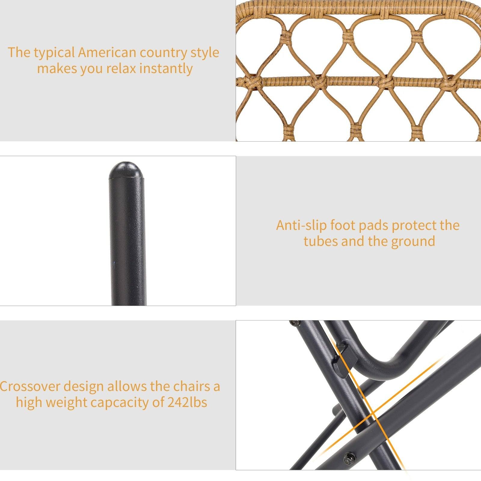 This bistro table set is made of high-quality PE rattan, with a strong metal frame underneath. Not only does this promote longevity, but helps fight against the weather as well. The patio furniture has a natural rattan look and feel, creating a raw aesthetic that fits in perfectly with your own patio. However, the material of this cafe bistro table is PE, which is easy to clean and maintain. Check out this patio set, and start enjoying conversation and meals outdoors.
