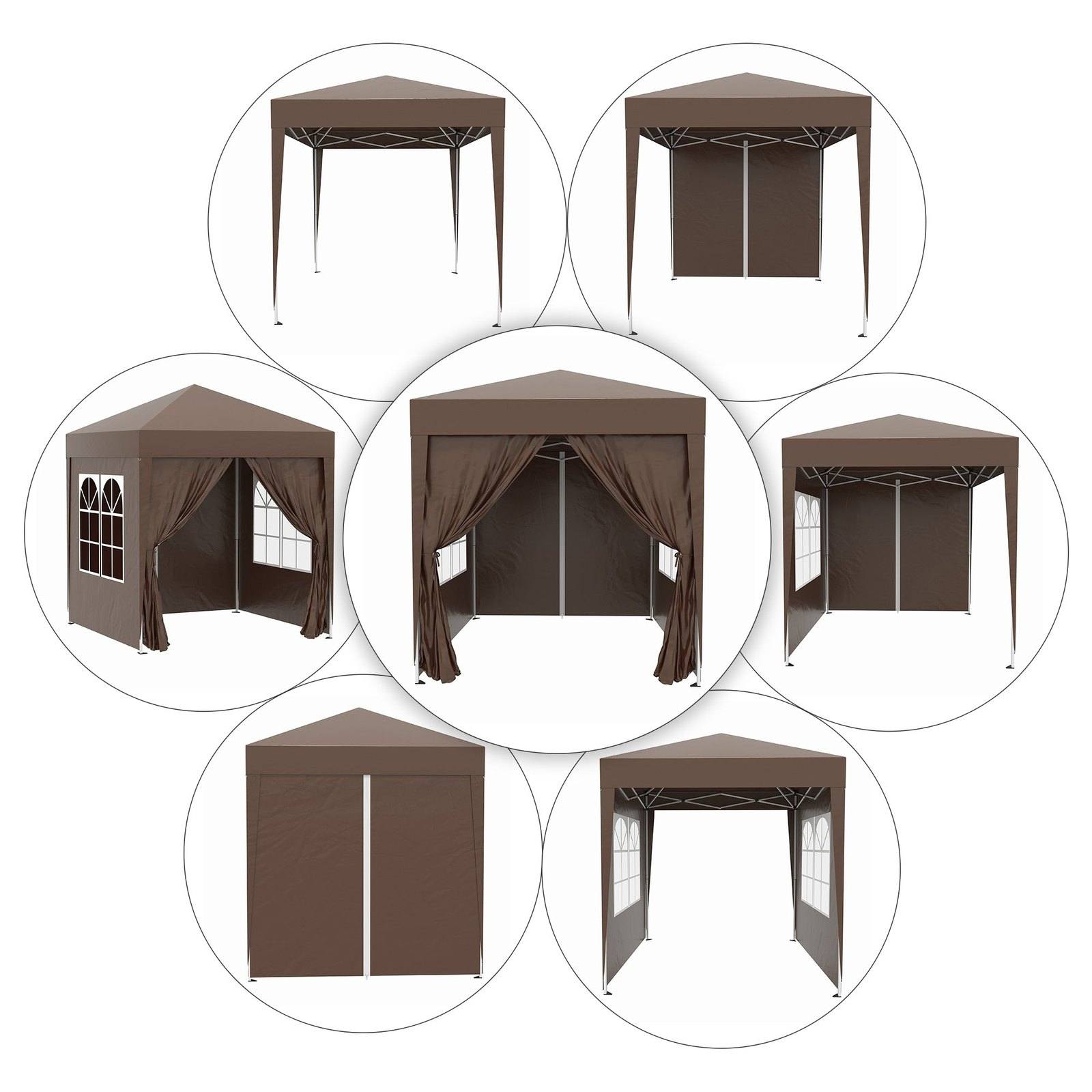 2m x 2m Garden Pop Up Gazebo Marquee Party Tent Wedding Awning Canopy New With free Carrying Case Coffee + Removable 2 Walls 2 Windows