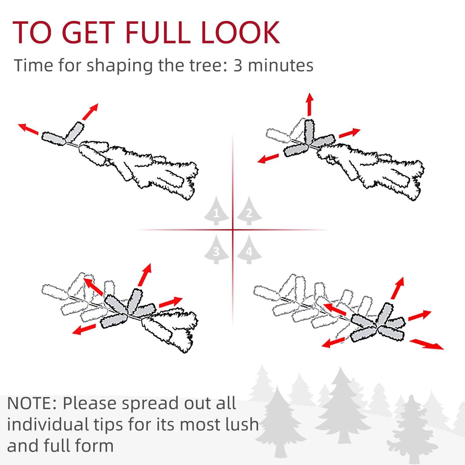 Lights work with 18-hours on, six-hours off timer. All pieces come hinged, with easy-to-shape moulded branches. Artificial Christmas trees can be assembled in about three minutes - just spend time shaping into place. .