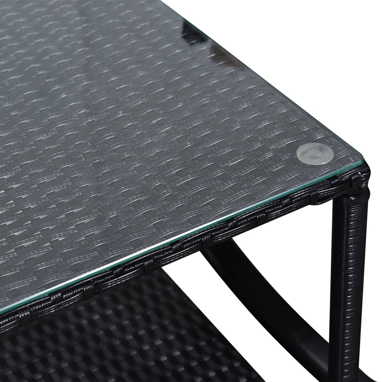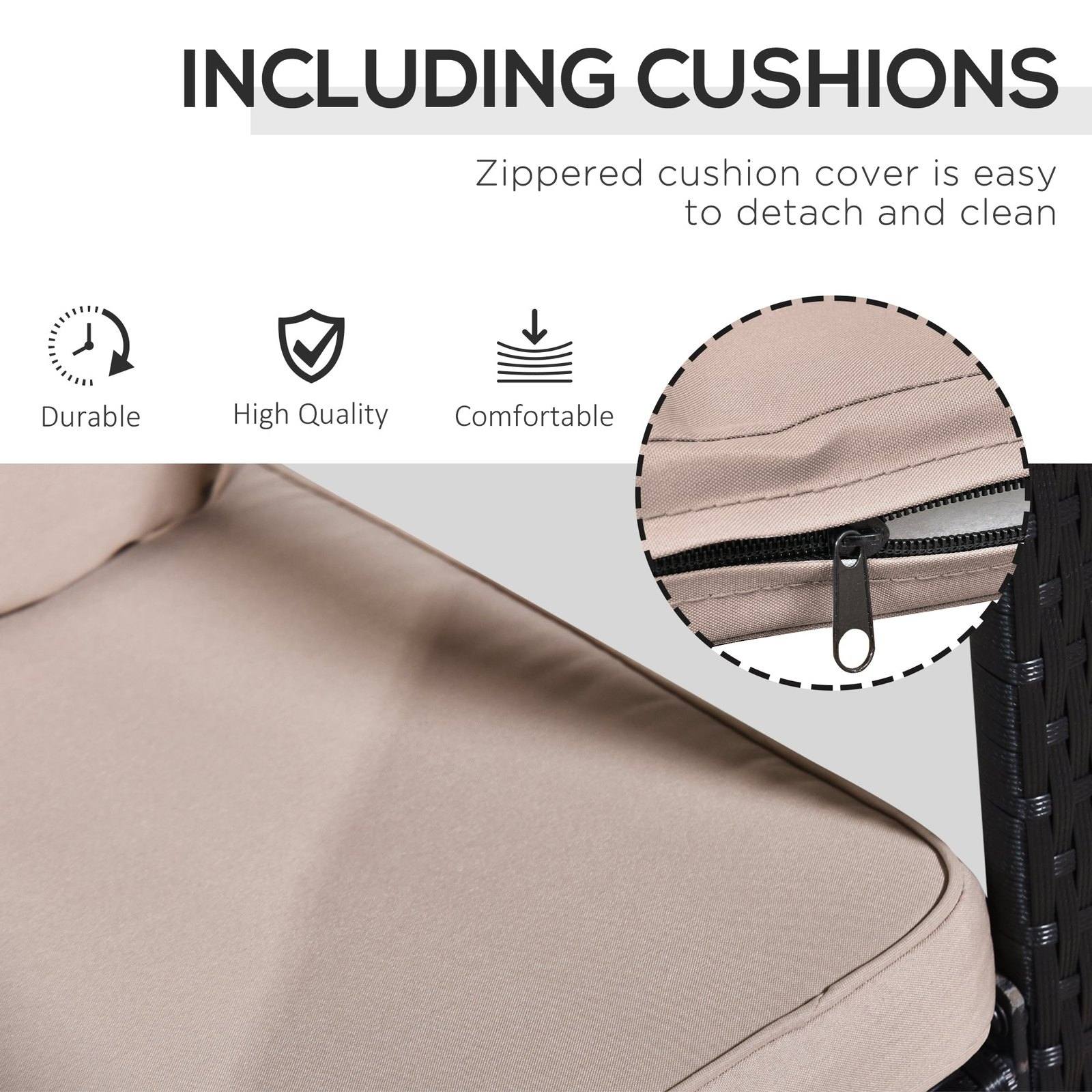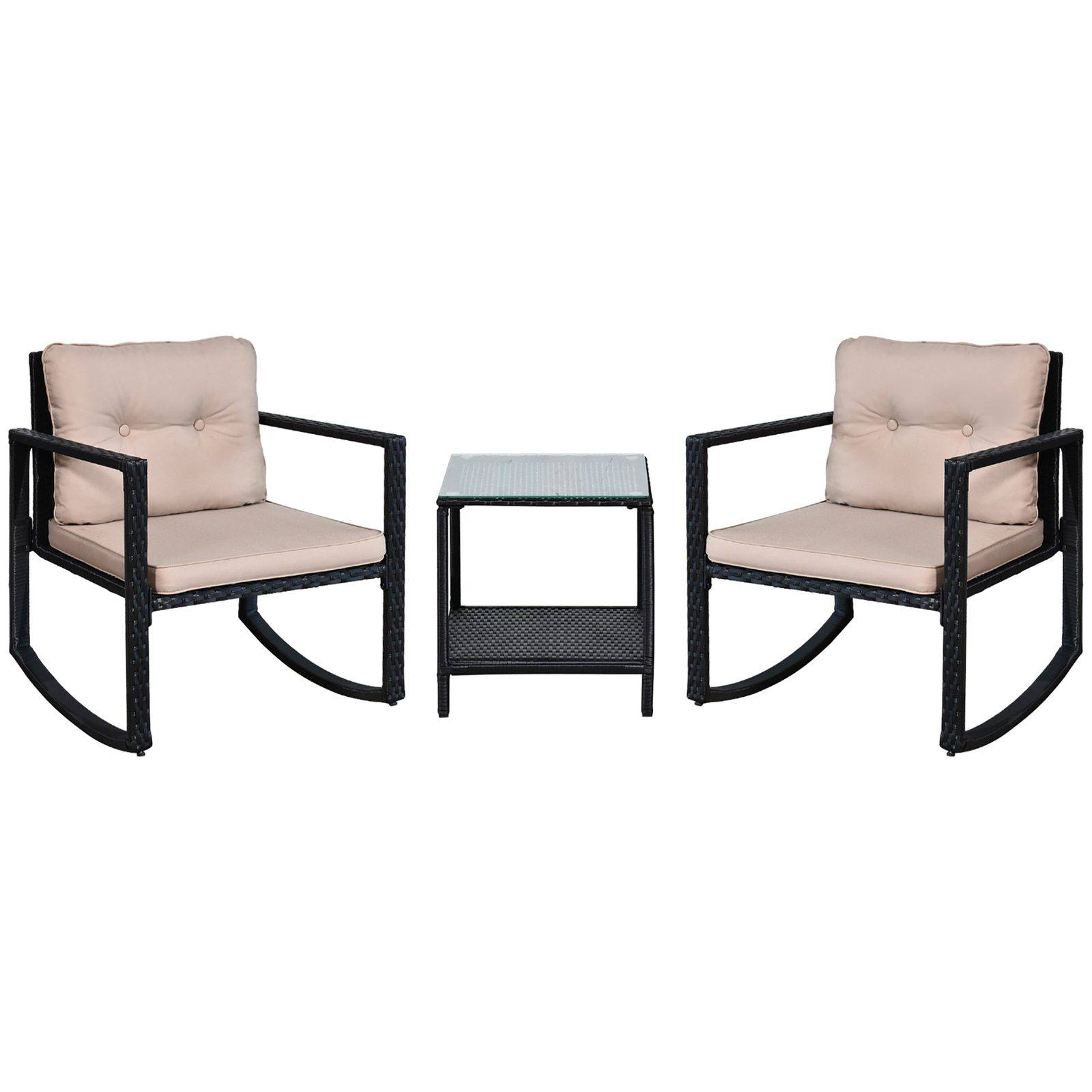 Rock the day away by yourself or with a friend with this three-piece set from Outsunny. Made from high quality PE wicker in a light grey finish, each piece is supported with a metal frame underneath for extra strength and stability. Each seat features two plush padded cushions and a high rise back for all day comfort. The set is completed with a matching side table which showcases a thick tempered glass top, ensuring its easy to clean whist adding a stylish finishing touch. Perfect for catching some well-deserved sun rays.