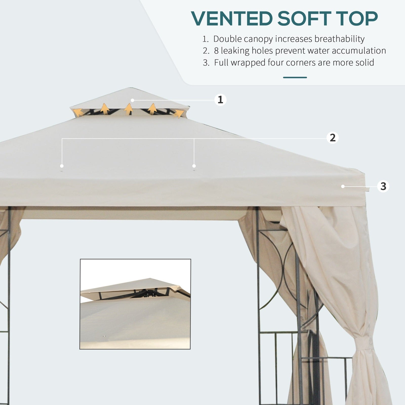 3 x 3 m Garden Metal Gazebo Marquee Patio Wedding Party Tent Canopy Shelter with Pavilion Sidewalls Beige