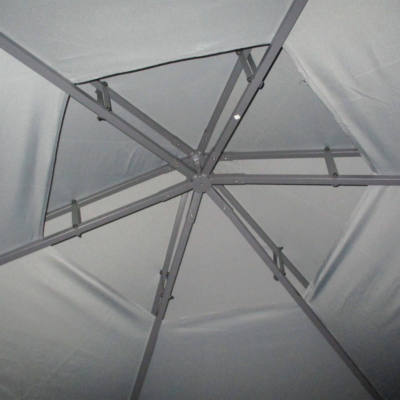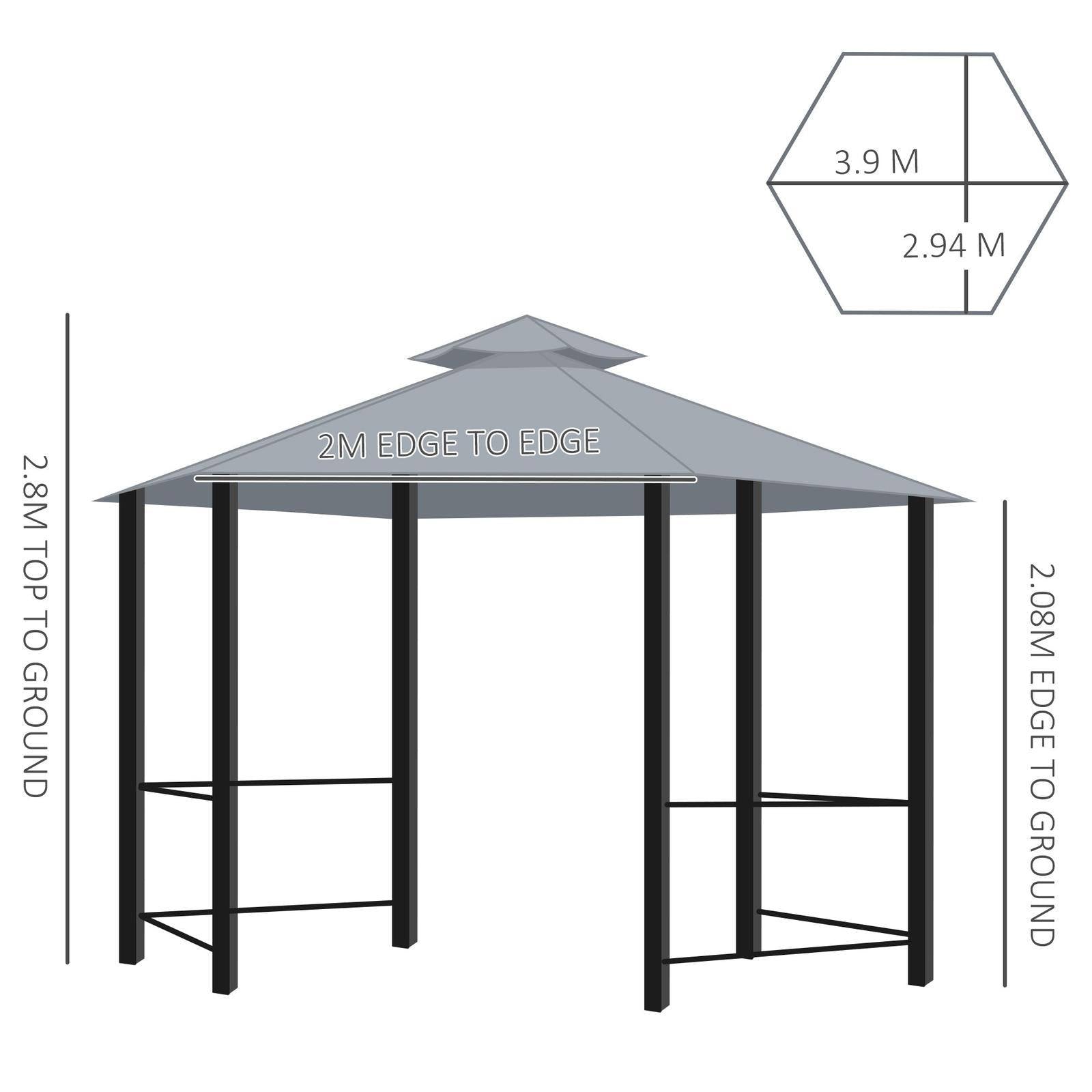 3 x 3M Hexagon Gazebo Patio Canopy Party Tent Outdoor Garden Shelter w/ 2 Tier Roof & Side Panel - Grey