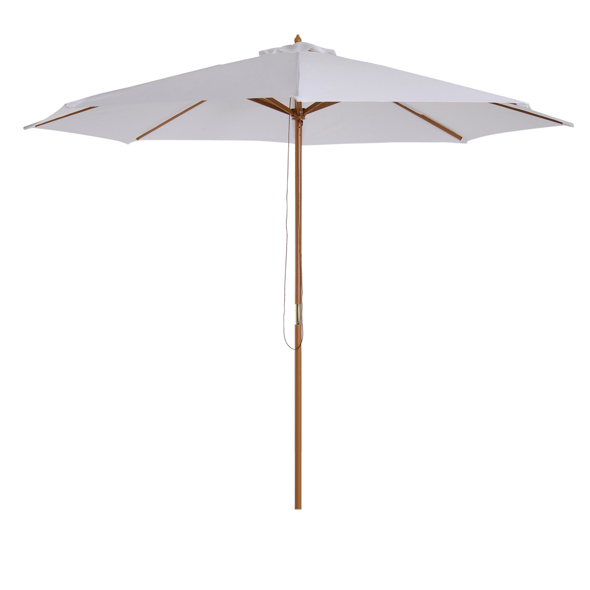 Open up and enjoy the elegance and abundance of shade - give your garden this large patio umbrella from Outsunny. The outdoor parasol's wooden pole forms the strong core structure and creates a beautiful look - classic and complements your other wooden, metal and rattan furniture. Comes with a Ø3m parasol to create plenty of shade for you; the angle can also be easily adjusted. Complete with our weighted bases for it to stand steady. Simply pull into place and start enjoying your garden.