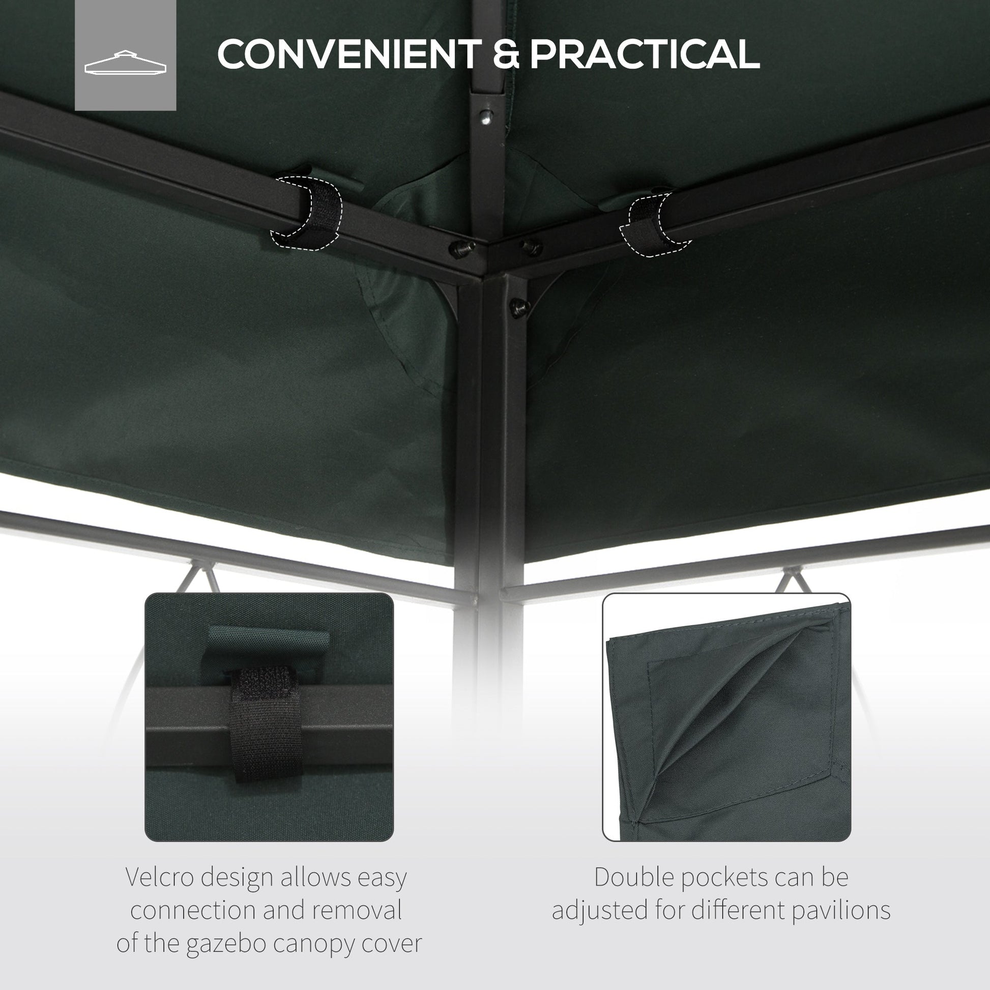 - Velcro-style straps to attach to gazebo easily