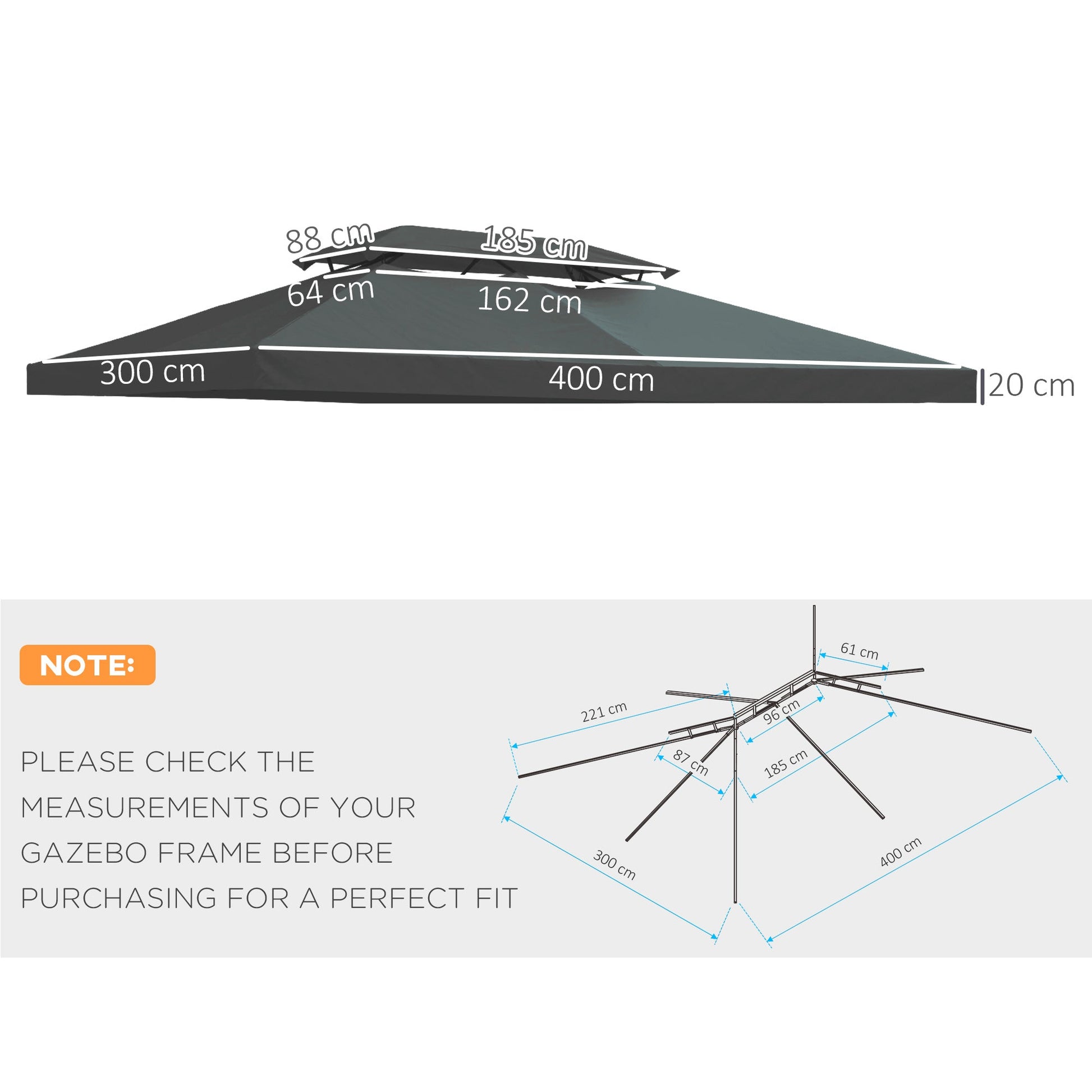 - NOTE: 1. Before buying, please measure the basic length of the gazebo to meet the product size