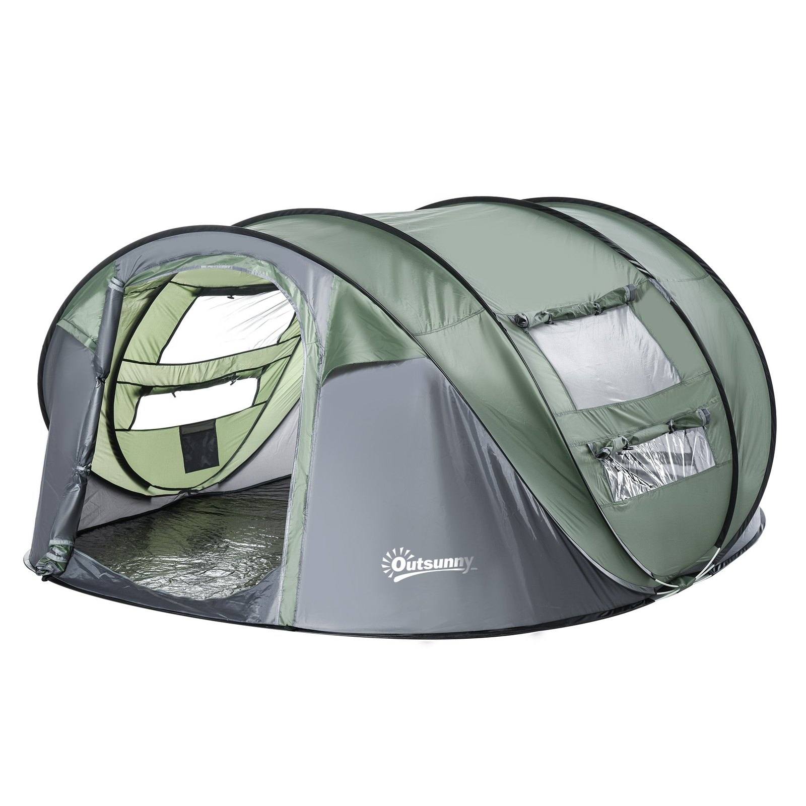 4-5 Person Pop-up Camping Tent Waterproof Family Tent w/ 2 Mesh Windows & PVC Windows Portable Carry Bag for Outdoor Trip Dark Green