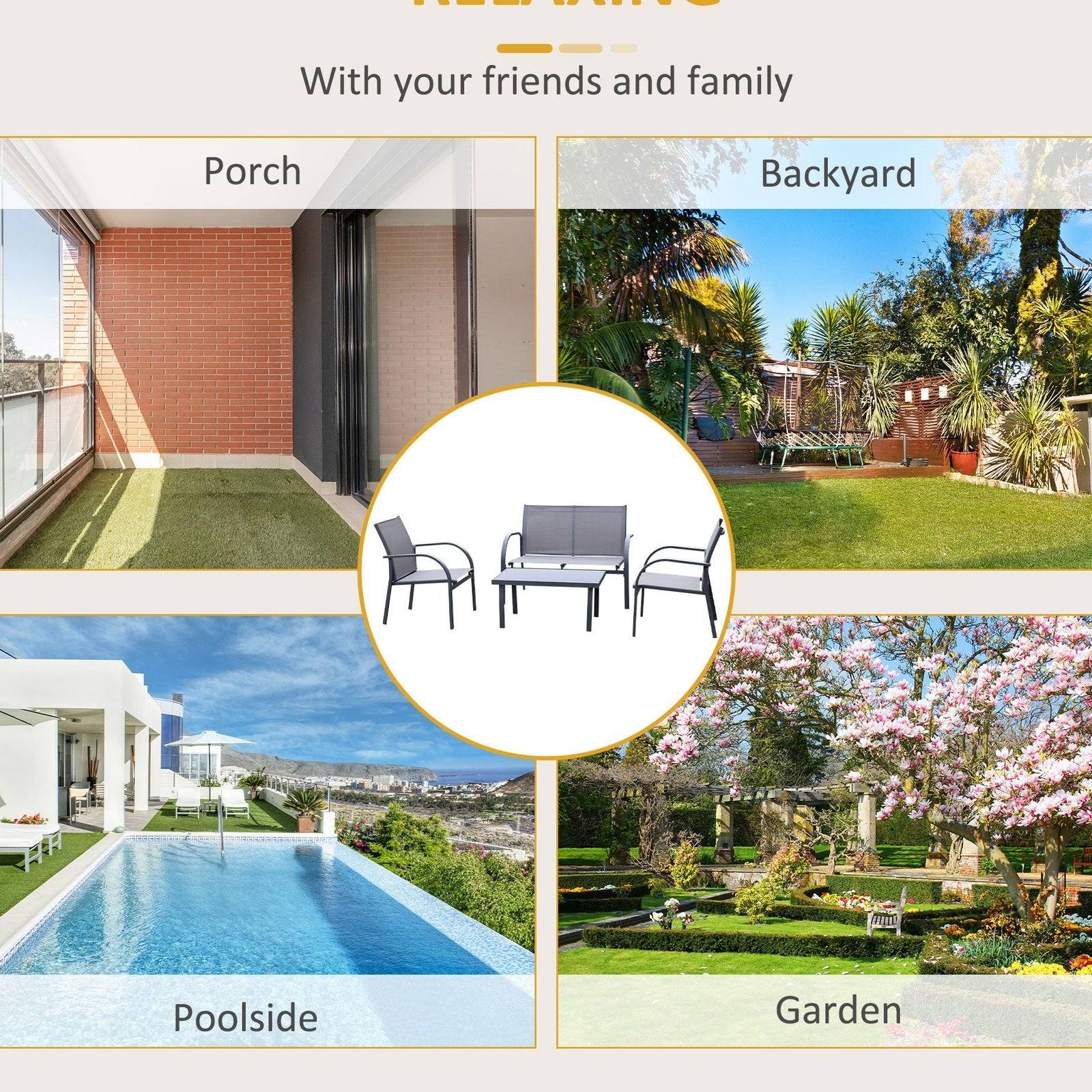 4-Piece Curved Steel Outdoor Furniture Set w/ Loveseat