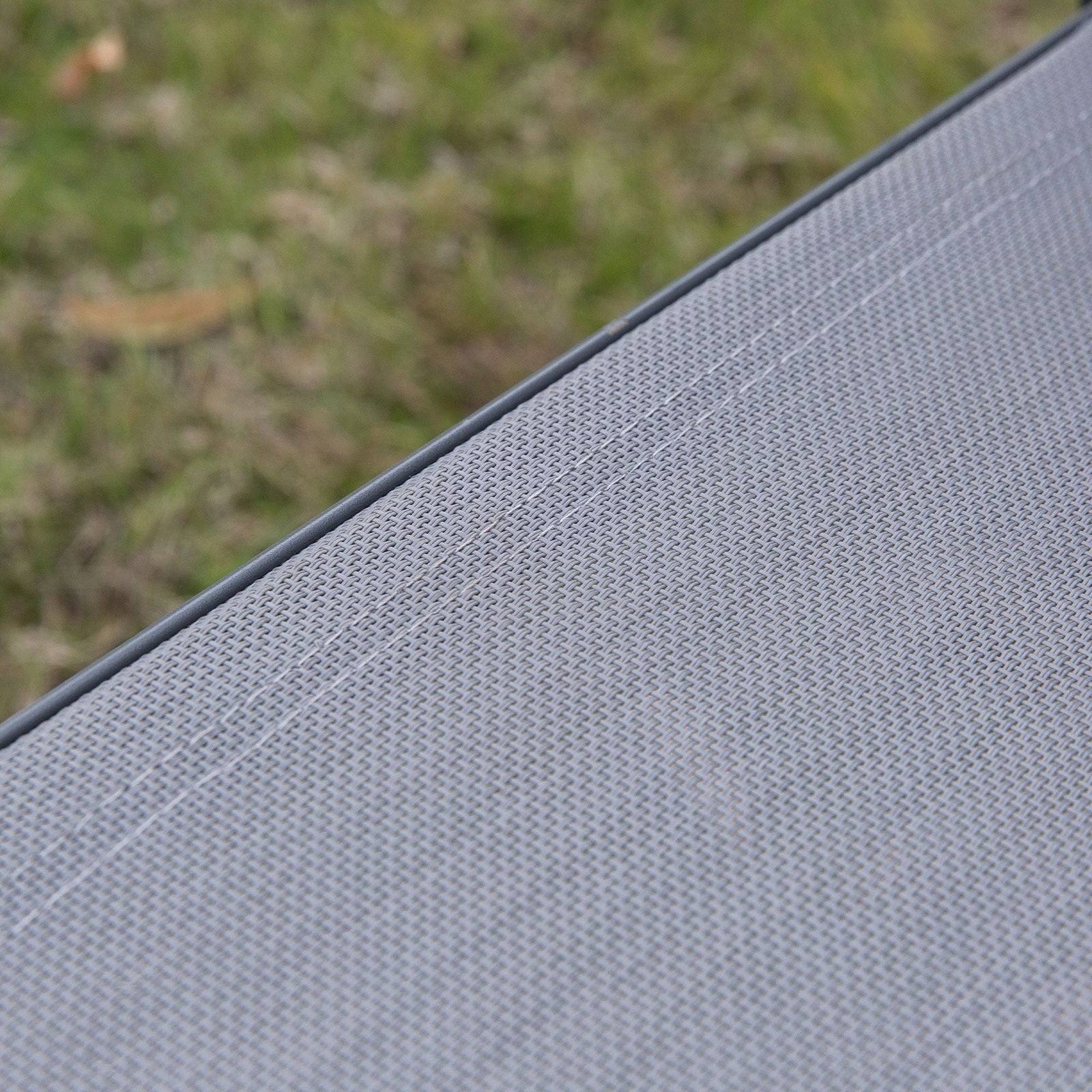 - Material: Steel Frame, Sling Mesh Fabric, Tempered Glass