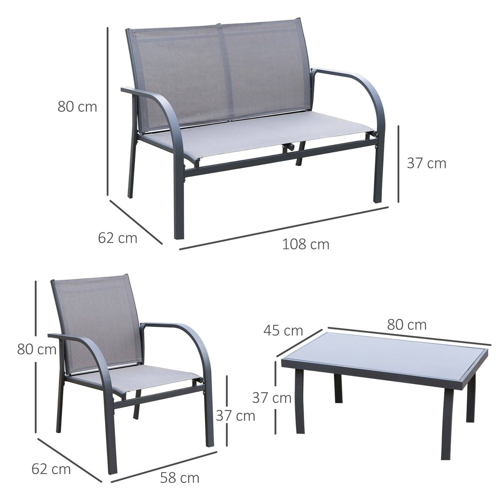 For a minimalistic approach to outdoor dining this season, opt for this four-piece metal garden furniture set from Outsunny. The outdoor sofa set includes a two-seater loveseat, two chairs and a matching table with texteline seats for you to sit comfortably. Smooth curved armrests give a relaxed look, whilst the high and slightly bent backs provide support when you lean back. A tempered glass panel on the table completes this patio set, a beautiful and smooth surface which can be wiped clean easily.