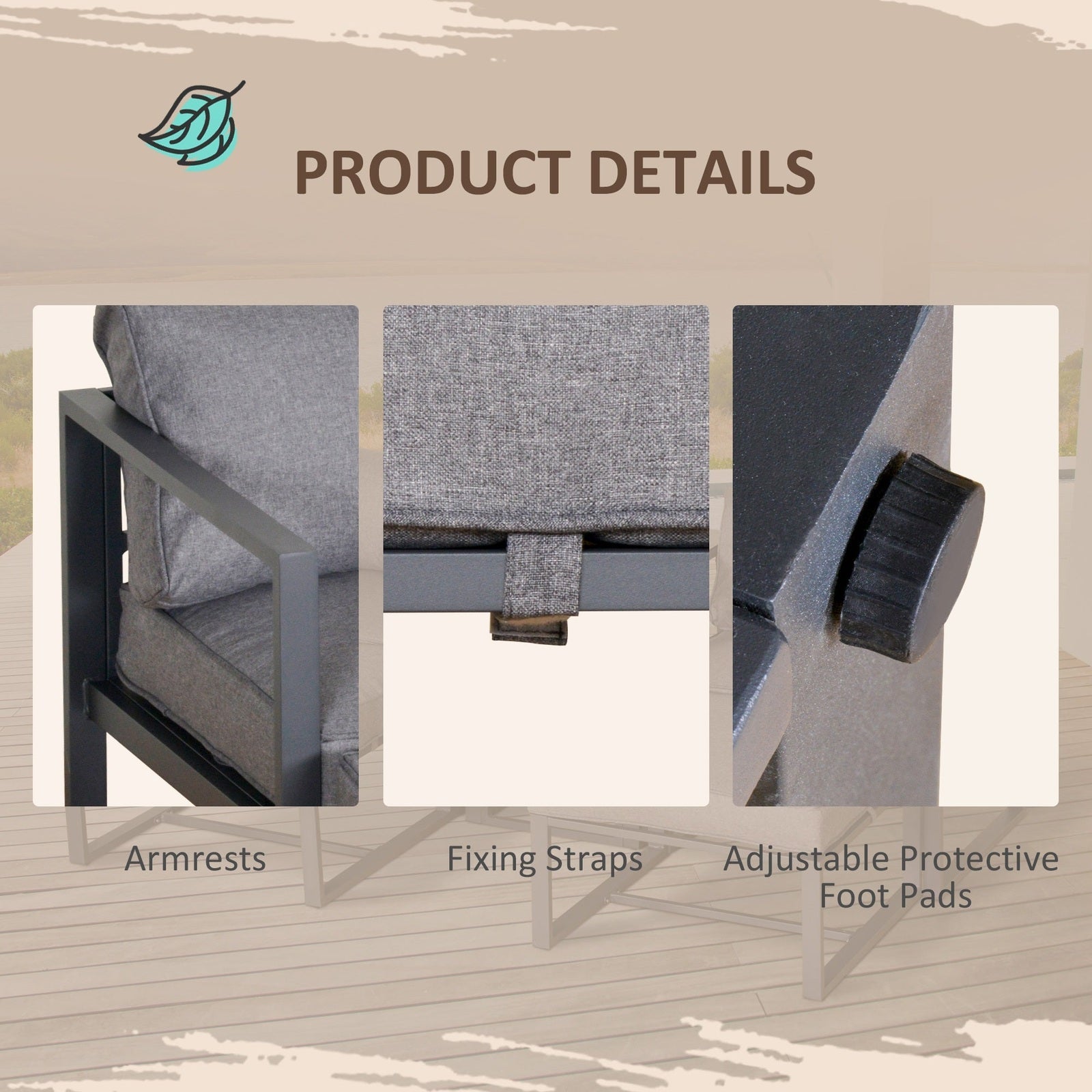 Energize your patio and add comfort to any outdoor space with this 5pcs imaginative sectional lounger chair set from Outsunny! This sofa set enhances the functionality of your outdoor sitting area with a new way to enjoy sunshine and fresh air with your loved ones. Thick padded cushions included provide ultimate comfort in your outdoor lounging time. Stylish and functional, it is a great lounger sofa set to well fit your patios, backyards, poolside or other outdoor spaces.