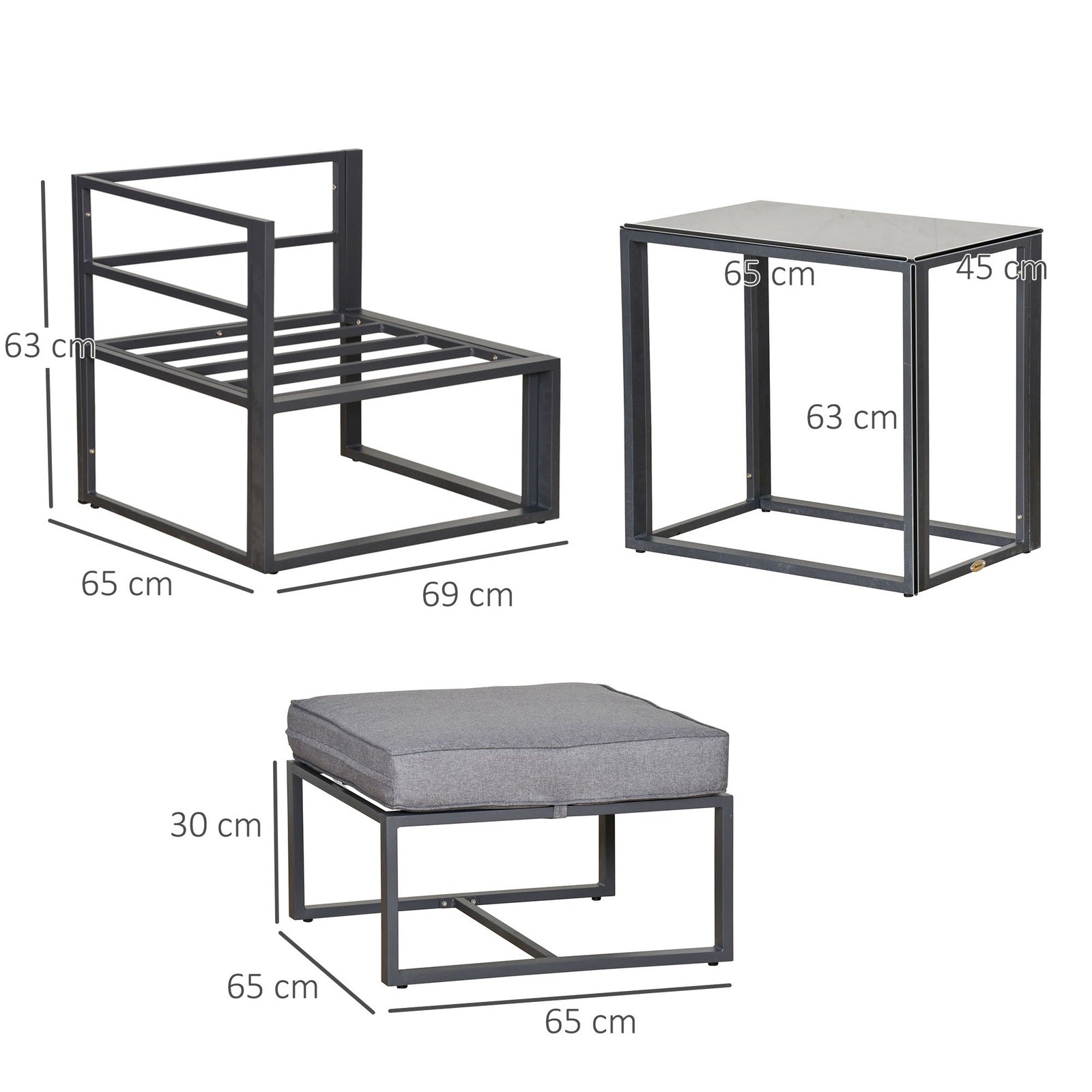 - Seat Dimension: 65W x 65D x 30H cm