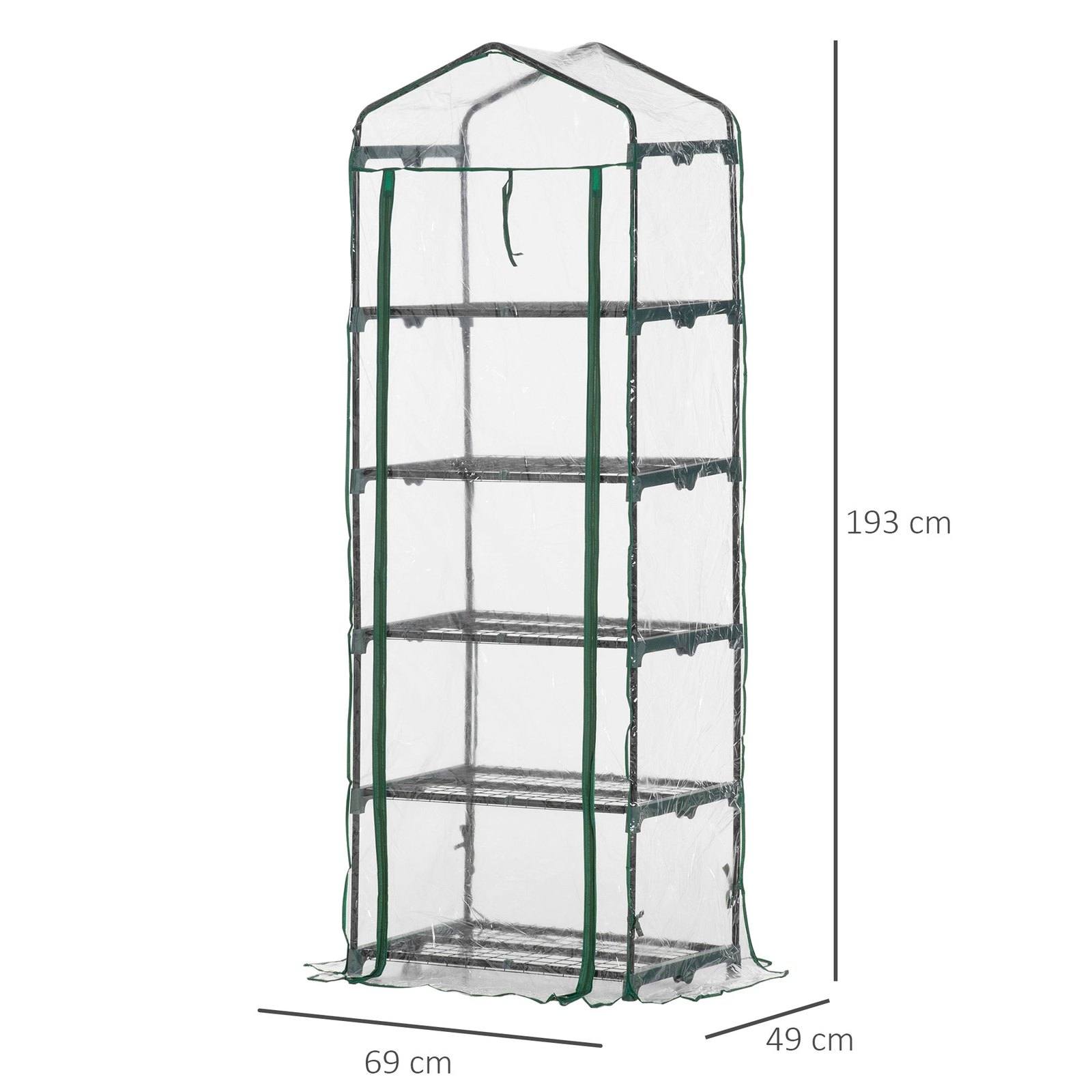 5 Tier Mini Greenhouse Outdoor Flower Stand Green House PVC Cover Portable Shed Metal Frame Transparent 69 x 49 x 193cm