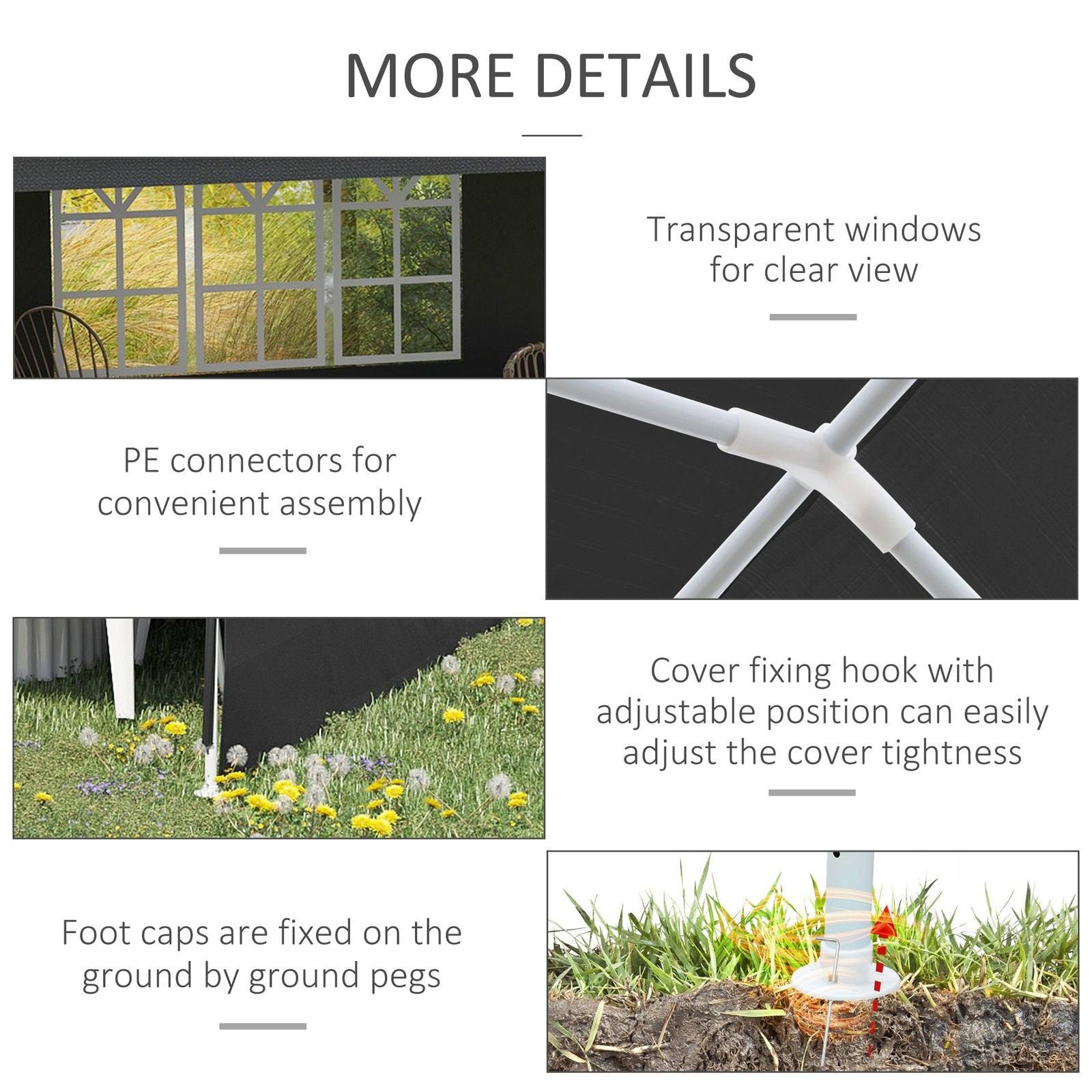 Create safe shelter with guests when entertaining outdoors - do it with this Outsunny 5.83 x 2.95m marquee gazebo with sides. It's formed of a steel frame for a tough structure, with a durable plastic canopy covering half - no front for an open feeling. Six guy ropes and 12 ground pegs are included to pin to the ground for extra stability. For many events like BBQS, family parties, wedding receptions, BBQs and more. Finished with handy adjustable feet.