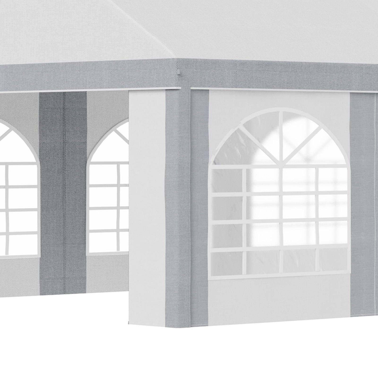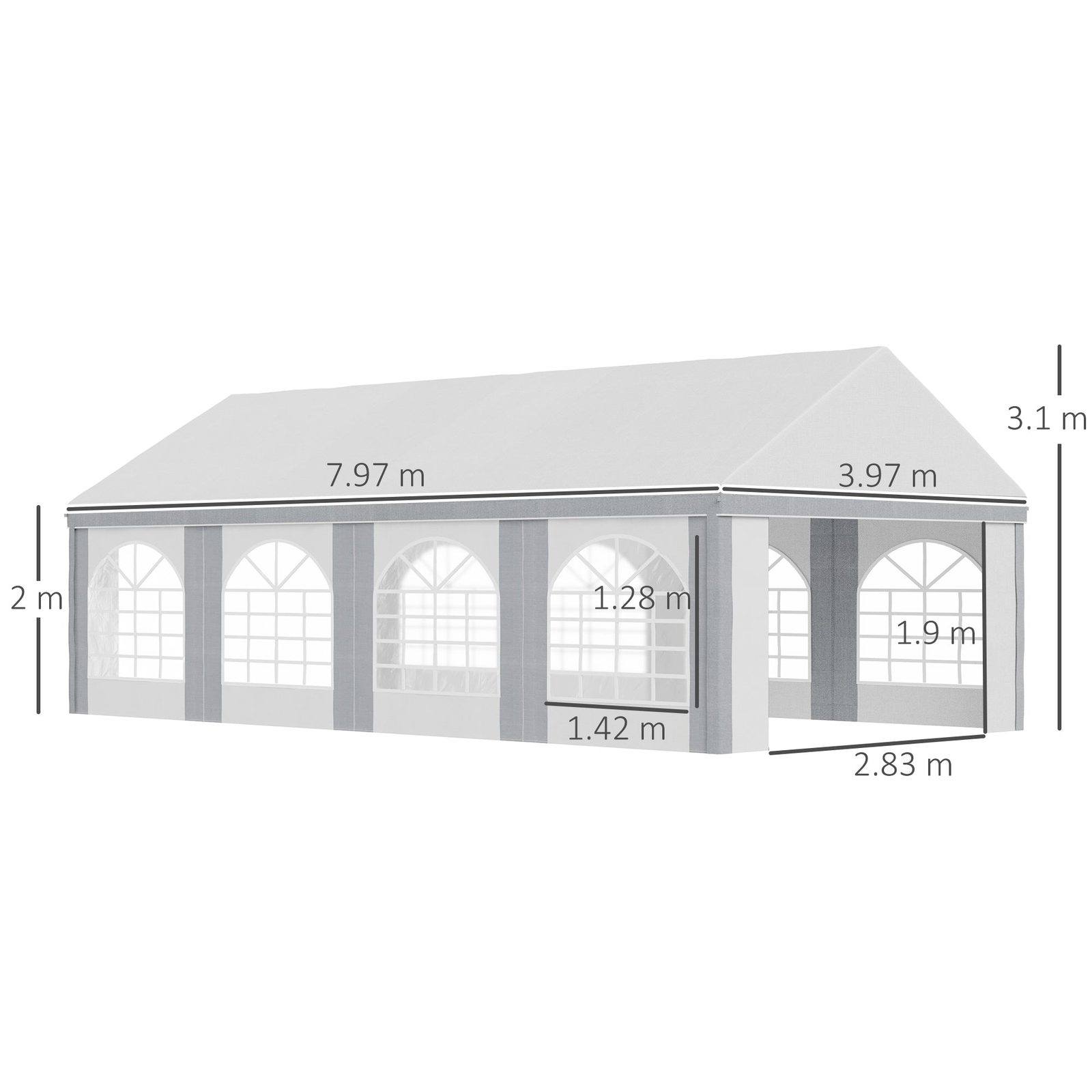 For your outdoor gatherings this season, say hello this cool stripey 8 x 4m marquee gazebo, from Outsunny. A galvanised steel frame means a strong, sturdy core; it's fitted with a thick plastic canopy for a safe inner shelter. The roof shields you inside from direct sunlight and light wind and rain - ideal for keeping you and guests sheltered when needed. All the walls can be taken off when you want to open up on hotter days - with windows to allow sunlight in when they're fixed in place.