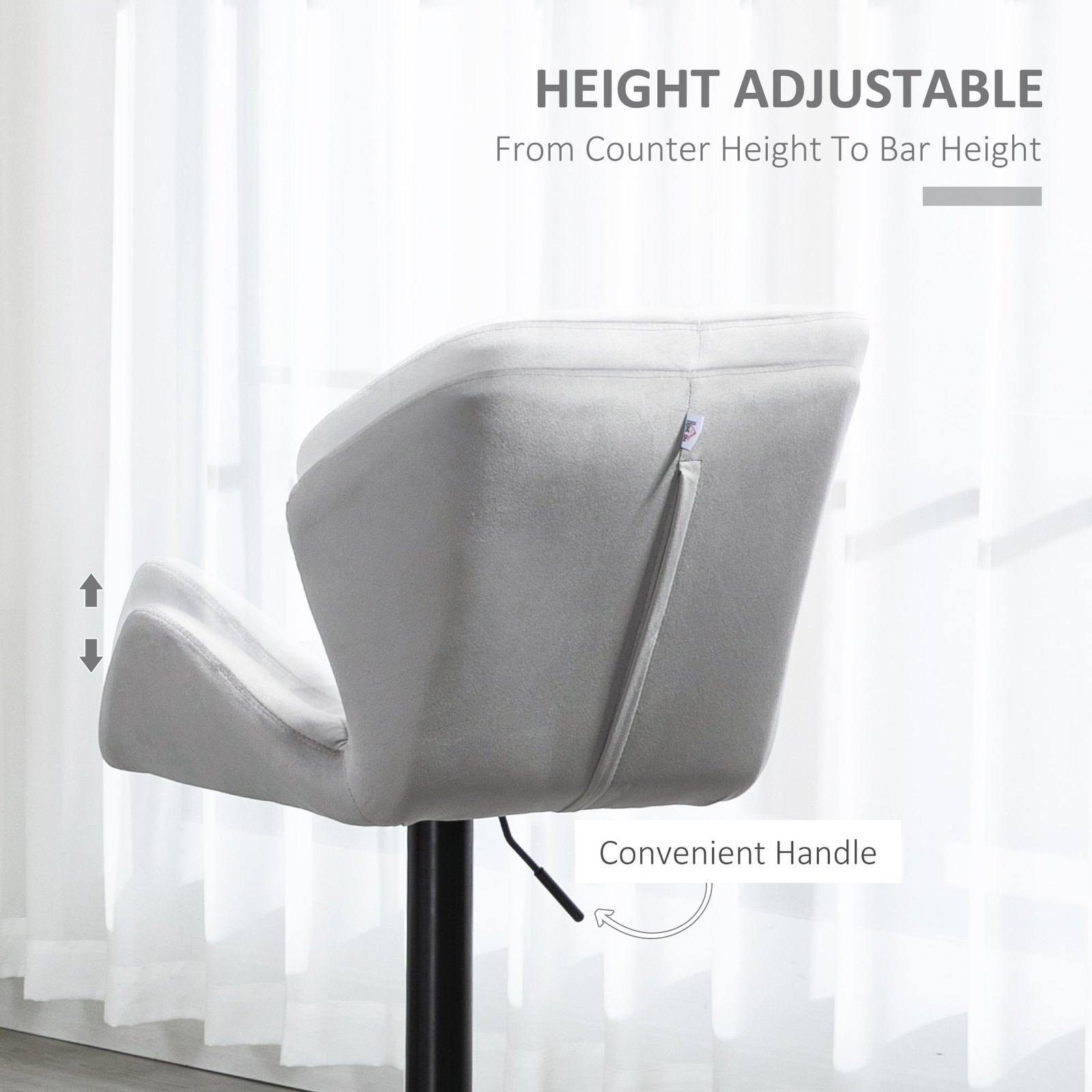 Dreaming of a more luxurious spot in your home? Awaken to these kitchen stools with backs from HOMCOM. The design blends moulded seats which are oh-so easy to sink into, with velvet-feel upholstery for sophistication. There's triangle-panelling all over for a slightly retro look. Each seat is fixed firmly onto a metal base - the structure is solid and comes with a round base to keep balance. Whether dining higher or lower, these seats are the backdrop you've been yearning for.