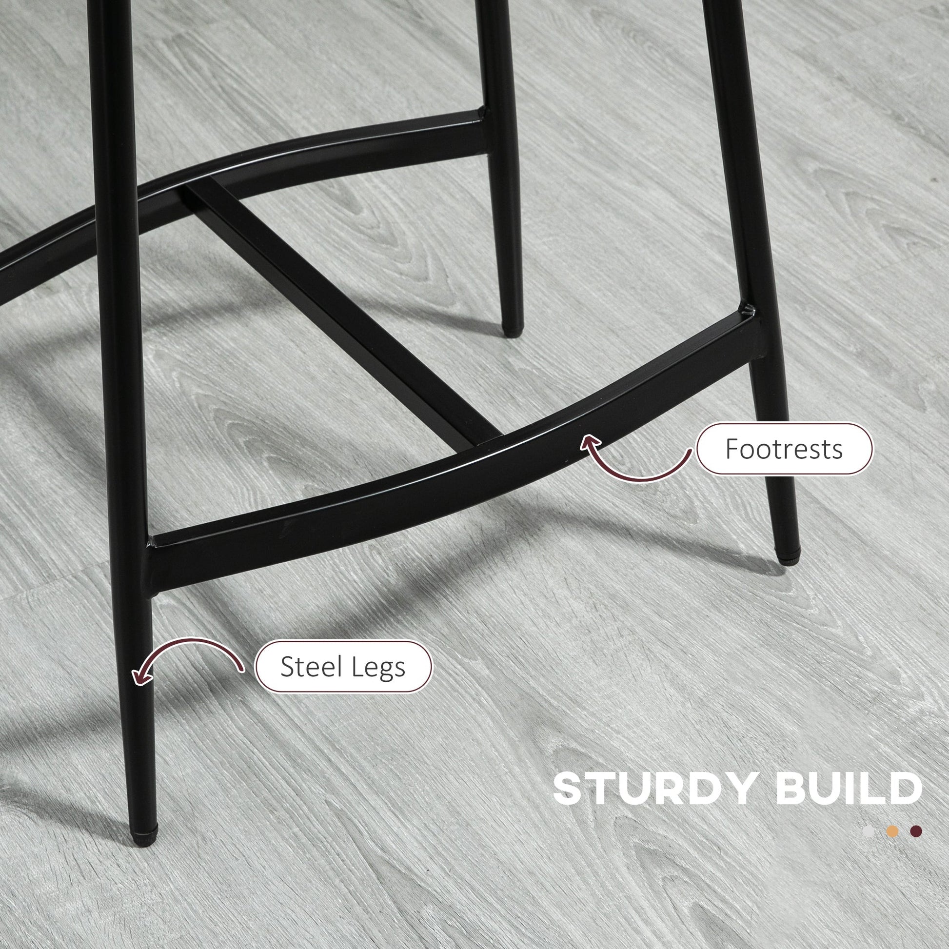 Take a moment to sit and relax in your dining area with these HOMCOM bar stools. They come with a strong steel frame for plenty of support, with padded seats to keep you comfortable. Take the dark colours, they create an industrial look which is extremely versatile - the stools are great additions to plenty of spaces. Breakfast bar stools are complete with bottom bars to rest your feet.