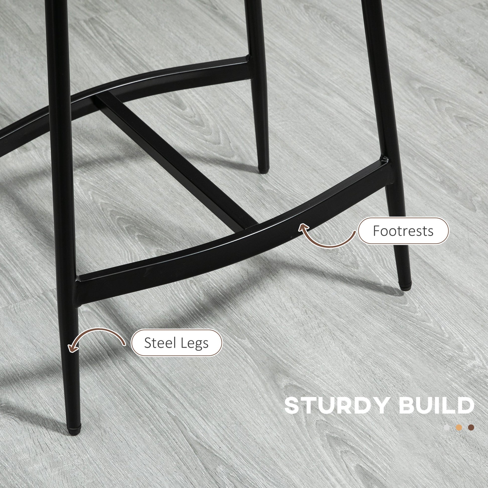Take a moment to sit and relax in your dining area with these HOMCOM bar stools. They come with a strong steel frame for plenty of support, with padded seats to keep you comfortable. Take the dark colours, they create an industrial look which is extremely versatile - the stools are great additions to plenty of spaces. Breakfast bar stools are complete with bottom bars to rest your feet.