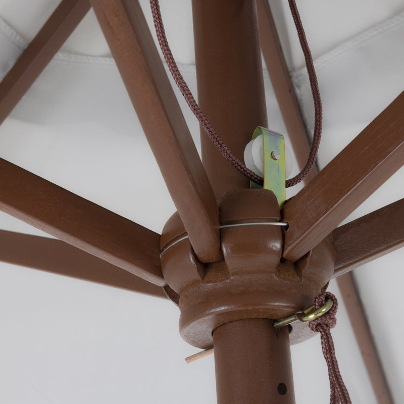 This wooden parasol is perfect for chilling out in the garden. A handy single pulley system means you can set it up quickly, and it will easily fit into garden tables. Showerproof, this parasol is ideal for light rain as well as sun. Parasol bases are also available.