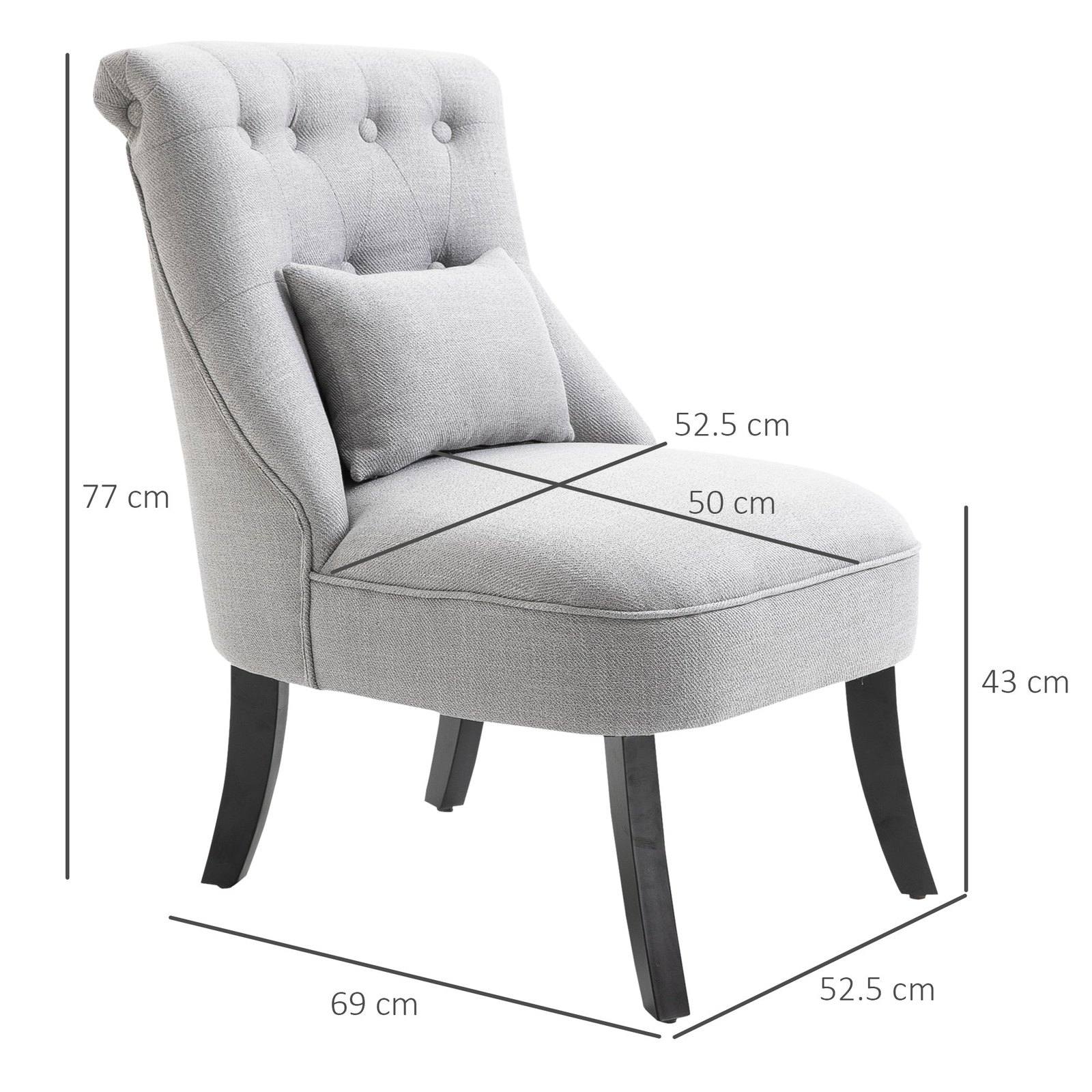 Sink into something comfortable without sacrificing on your precious home space with this occasional chair from HOMCOM. Linen feel fabric, wood legs and with the delicate button tufting on the backrest evokes a vintage style and makes a distinct statement in any setting. Soft cushioned seat and curved backrest with breathable linen-touch fabric delivers exceptional comfort. This bedroom chair will be an eye-catching to your living space, leisure room or lounge.