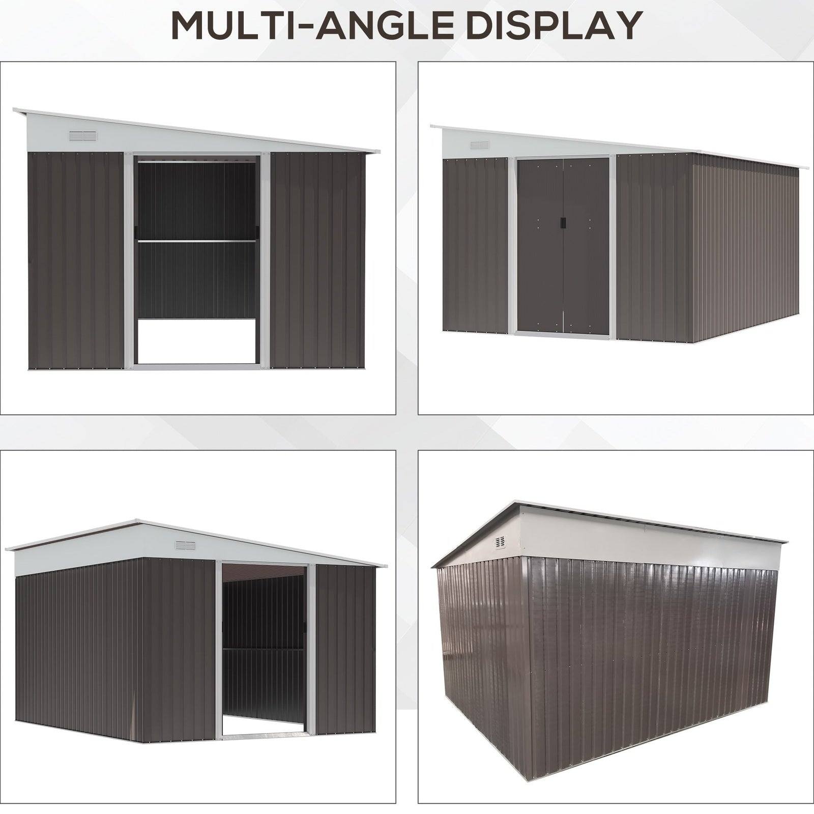 Galvanised 11.3 x 9.2' Sliding Double Door Offset Pent Garden Shed With Ventilation Steel Grey by Steadfast
