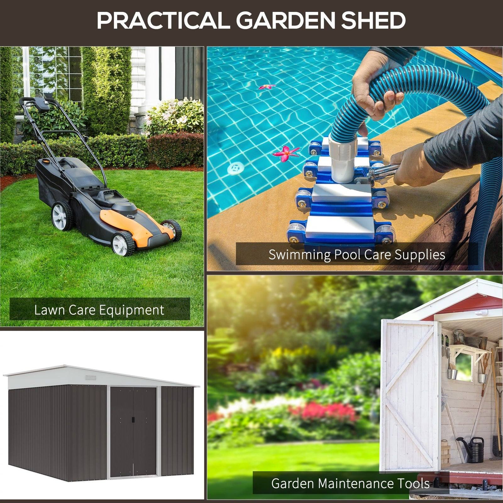 Easily add storage space to your property with this outdoor garden shed from Outsunny. This metal tool outer house storage shed is made from corrugated metal, so it's tough and sturdy. Double sliding doors for easy entry, with two ventilation holes to keep the inside aerated. This Outsunny model is for the seasons ahead. Floor foundation not included.