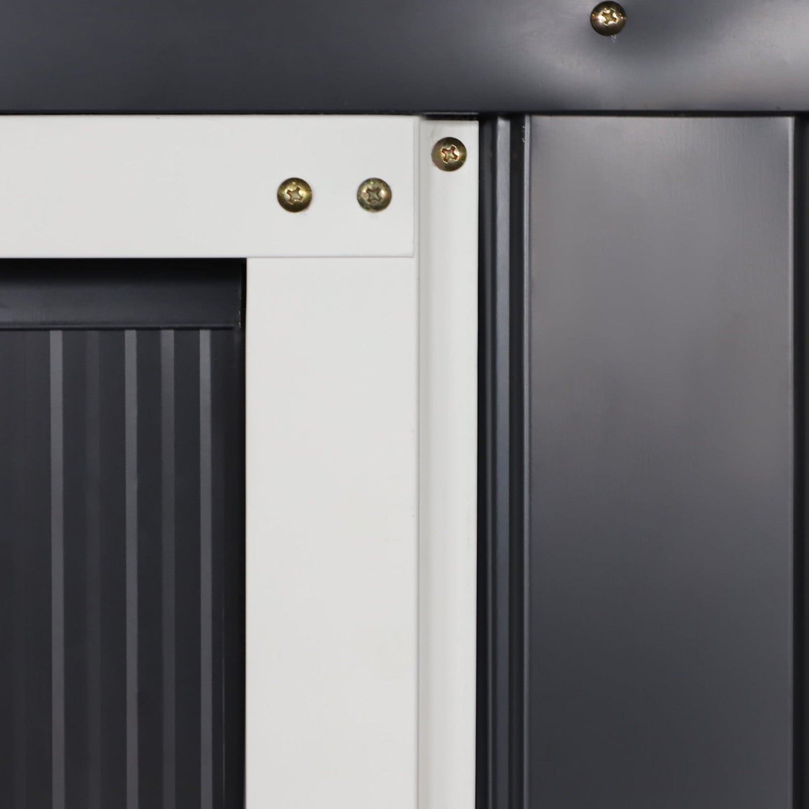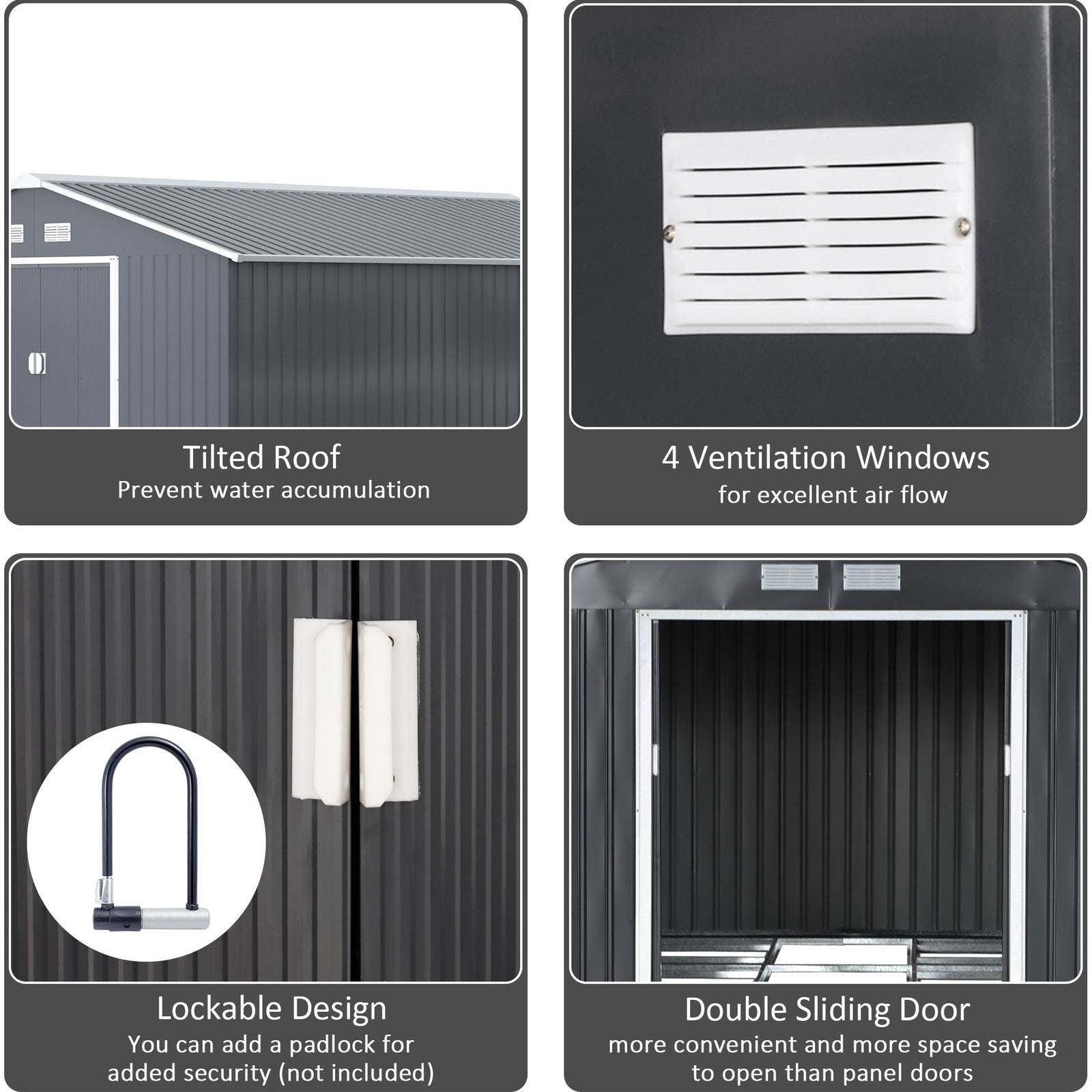 Keep your garden equipment and outdoor essentials locked away securely with metal garden sheds with base from Outsunny. It's made from colour steel for enduring reliability. With a sloped roof sitting on the top to help prevent water stagnating and rust forming, this motorbike shed is finished with a protective weather coating and floor foundation so you have everything you need to install this large garden shed when it arrives. The perfect home for all your outdoor tools and gear.