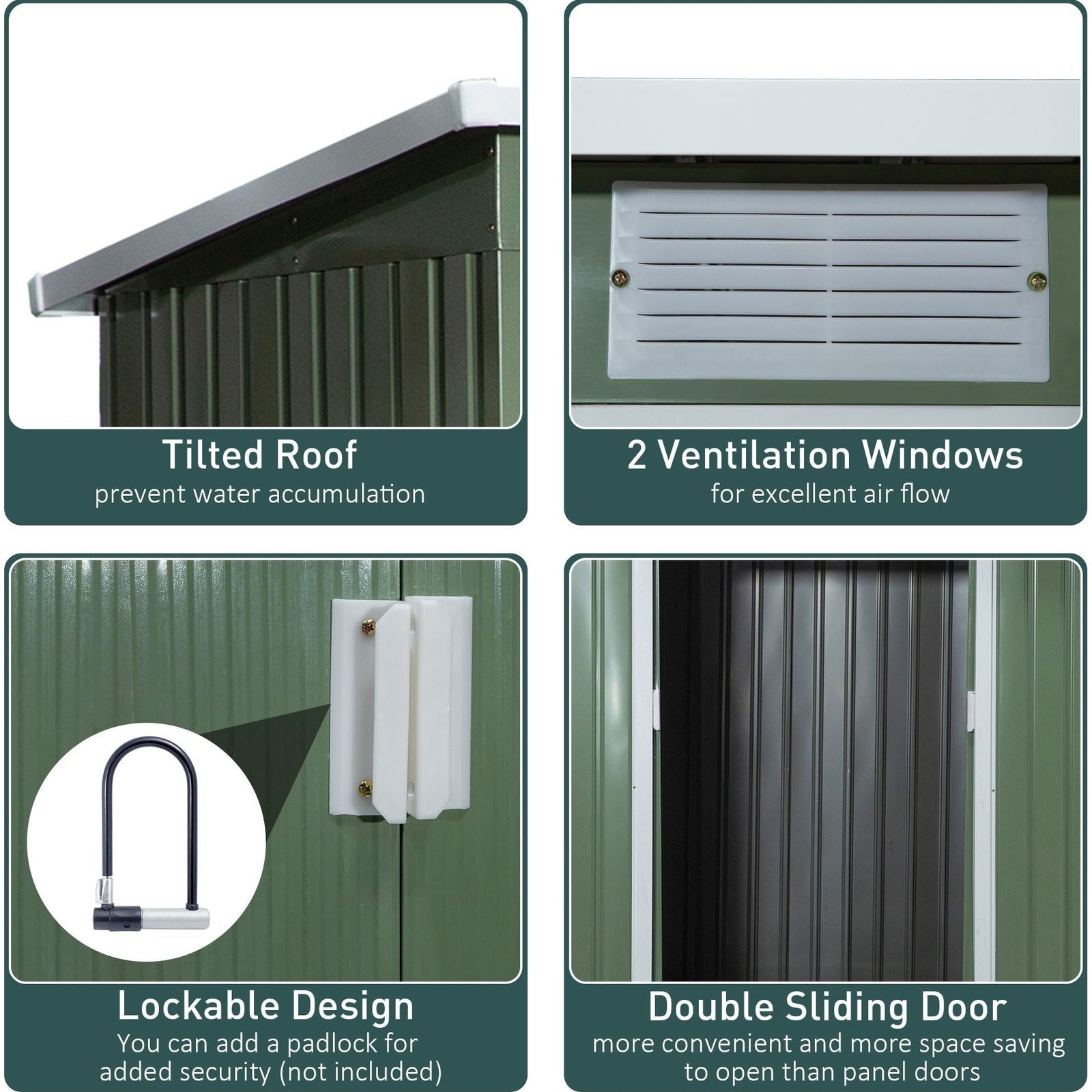 - Air vents to keep bike storage metal shed inside fresh and aerated