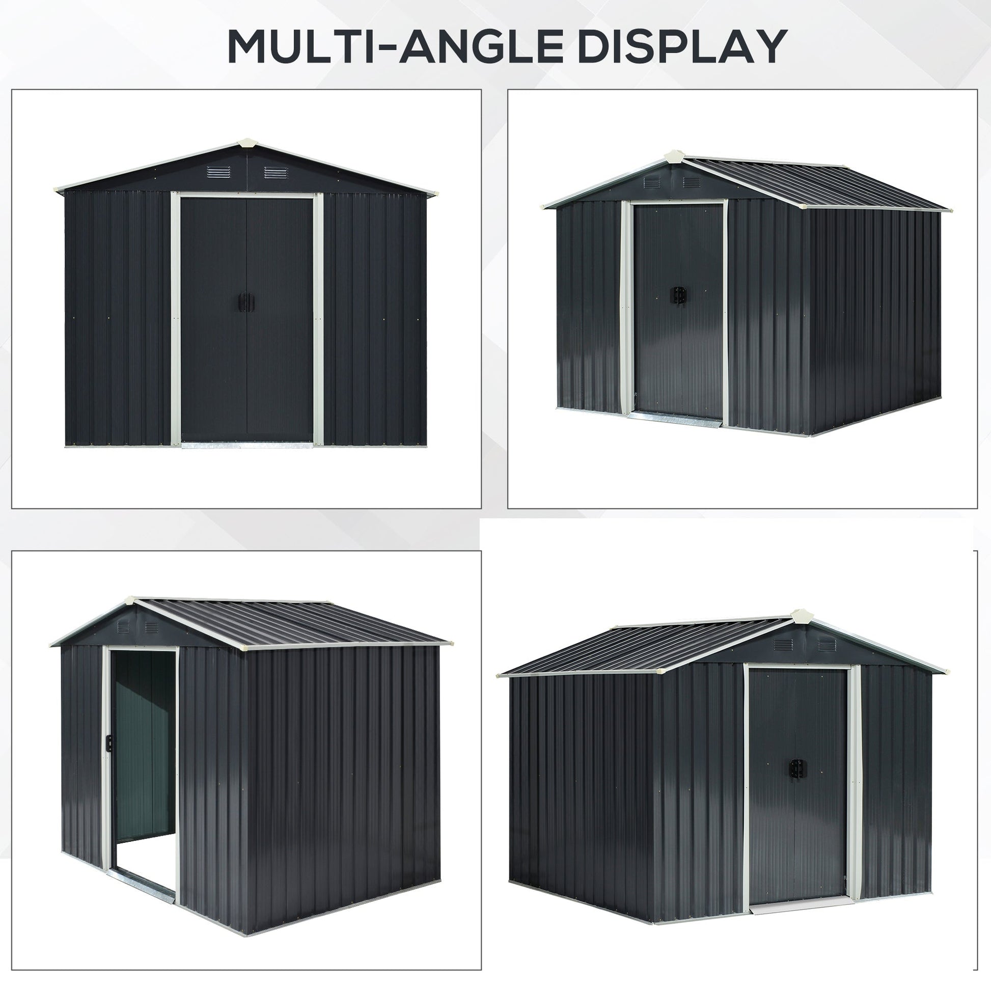 Galvanised 8 x 6' Sliding Double Door Apex Garden Shed With Ventilation Steeel Grey by Steadfast