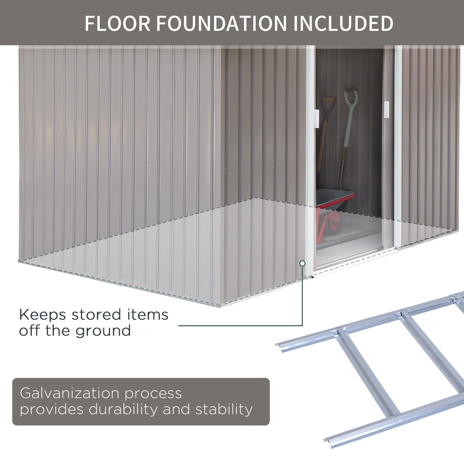 Keep your garden equipment and outdoor essentials locked away securely with metal garden sheds with base from Outsunny. It's made from colour steel for enduring reliability. With a sloped roof sitting on the top to help prevent water stagnating and rust forming, this motorbike shed is finished with a protective weather coating and floor foundation so you have everything you need to install this large garden shed when it arrives. The perfect home for all your outdoor tools and gear.