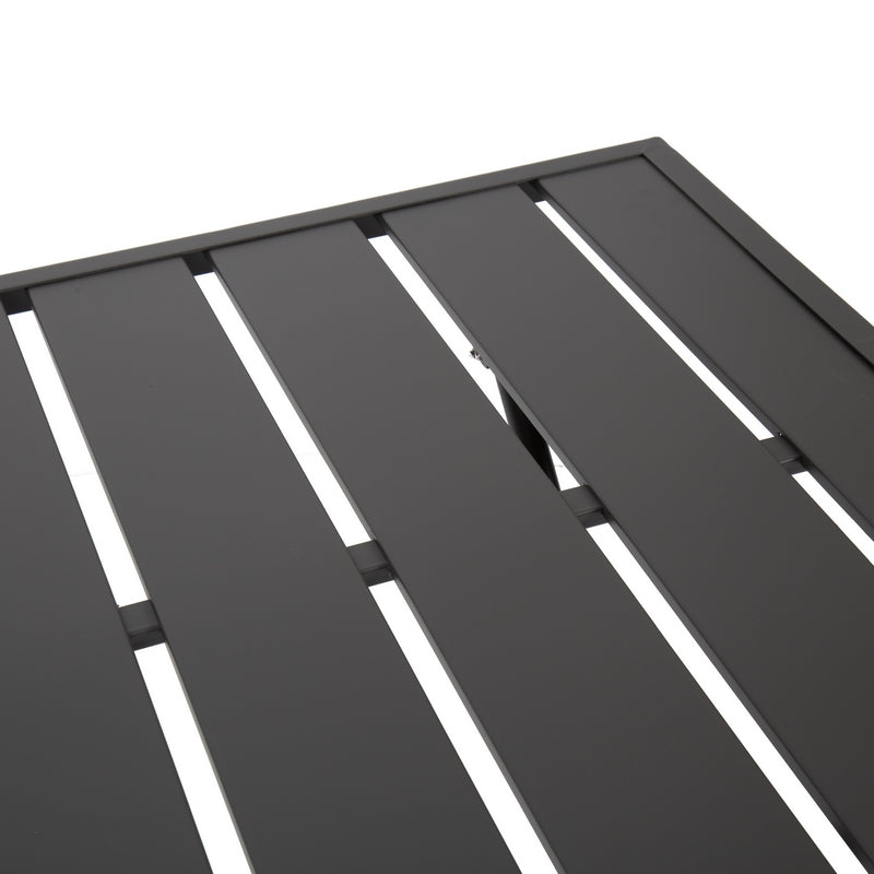 Enjoy eating your breakfast, lunch and dinner outdoors this season, with this beautiful four seater dark grey dining set. Constructed with a powder coated steel frame, this highly durable set will provide long lasting use. Perfect for gardens, balconies and patios, this large four seater dining set and can be folded away when not in use.