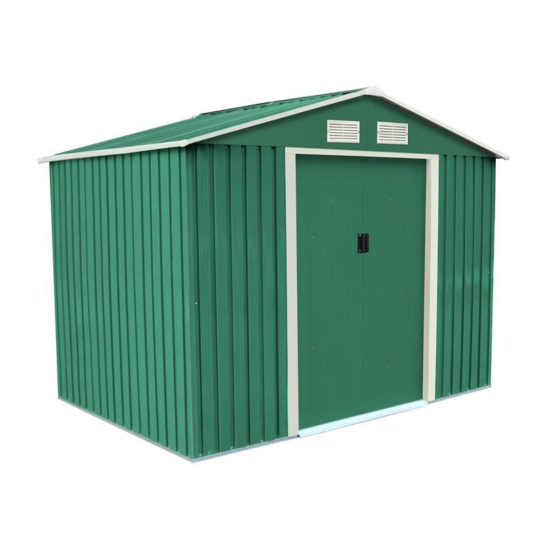This metal garden shed is ideal for storing garden and DIY equipment such as lawn mowers, power tools and garden furniture. Alternative uses include bike, motorbike or garden furniture storage. Made from metal, and featuring a steel structure, this item is durable and long lasting. Features include two sliding doors, four vents and a floor foundation.