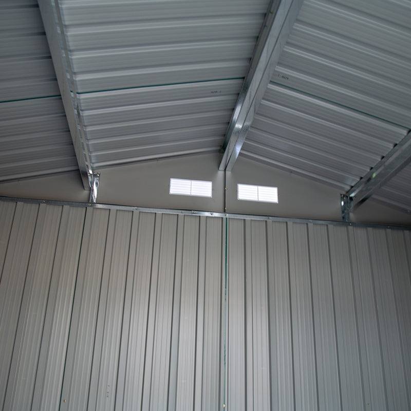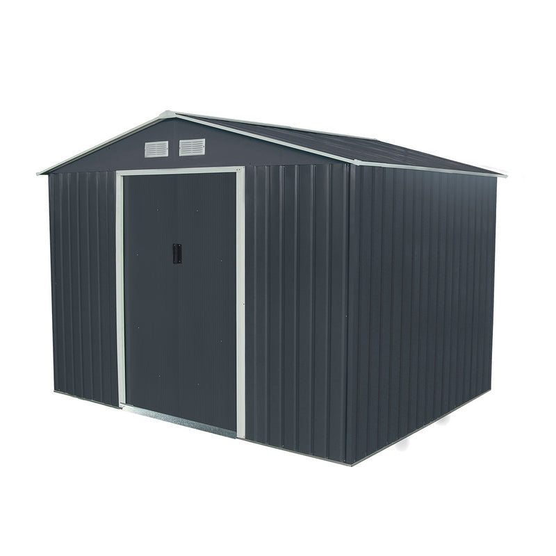 This metal garden shed is the ideal solution for storing your tools, gardening equipment and furniture. Galvanized steel panels in a zinc steel frame will ensure your possessions are kept safe from the elements. A lock will keep the sliding doors shut, leaving the contents secure.
