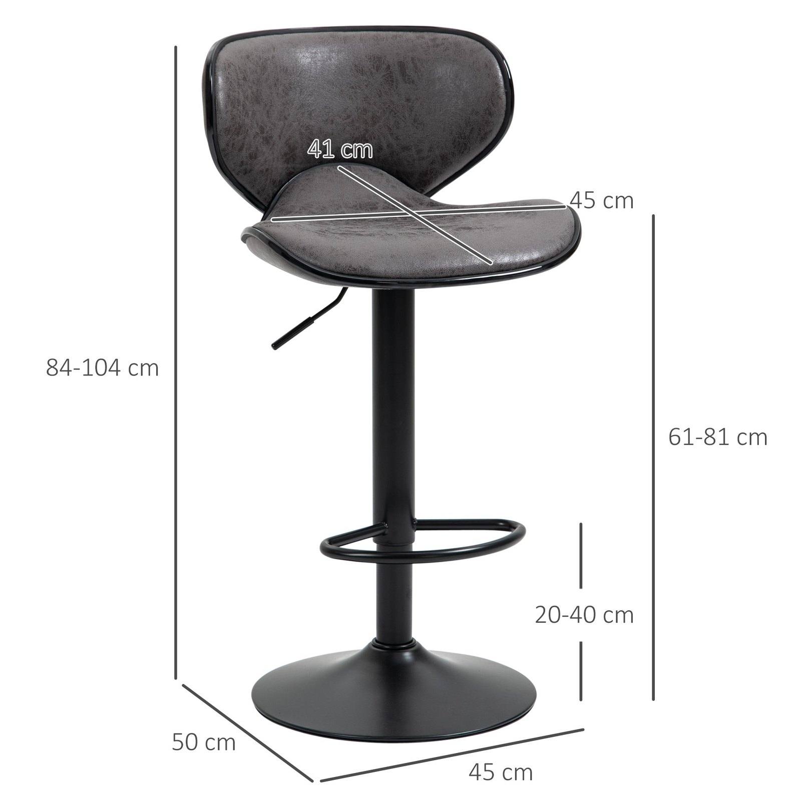 Homcom Bar Stool Set Of 2 Pu Leather Adjustable Height Armless Chairs With Swivel Seat Dark Grey