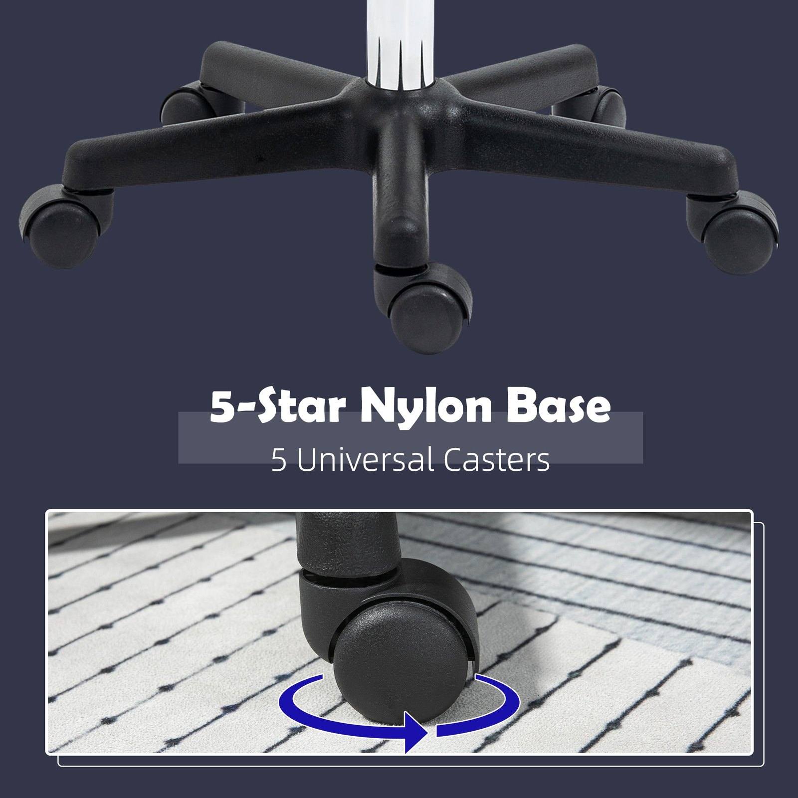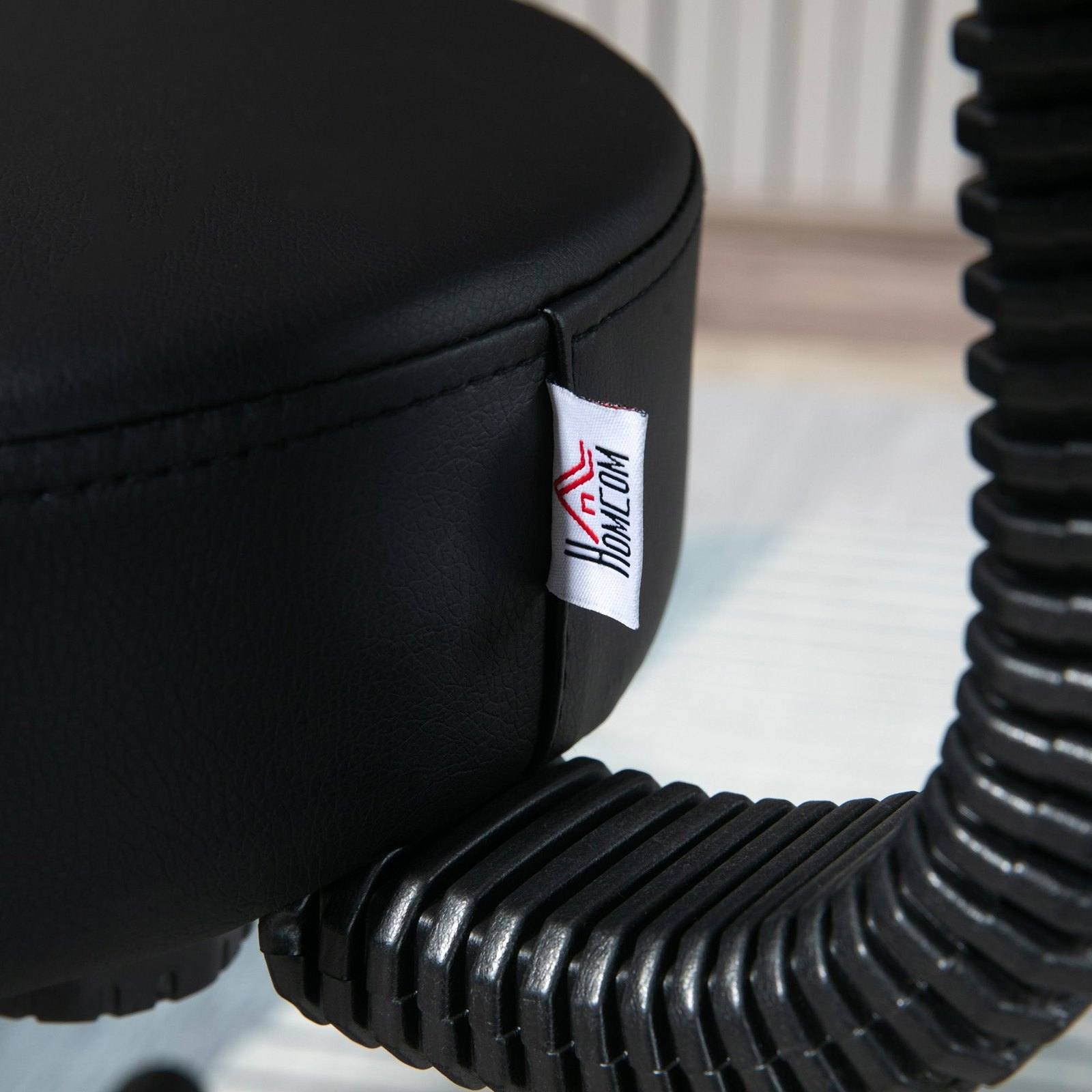 This saddle chair from HOMCOM, puts you at just the right height for whatever the task is at hand: painting, styling hair, massage and more - with the five wheels, this hairdressing chair allows you to move freely side-to-side, as your body moves naturally. The firm curved back and cushioned seat gives you the comfort needed for long sitting periods, with the steel frame offering full support. Height adjustable between 72 cm and 84 cm for different needs.