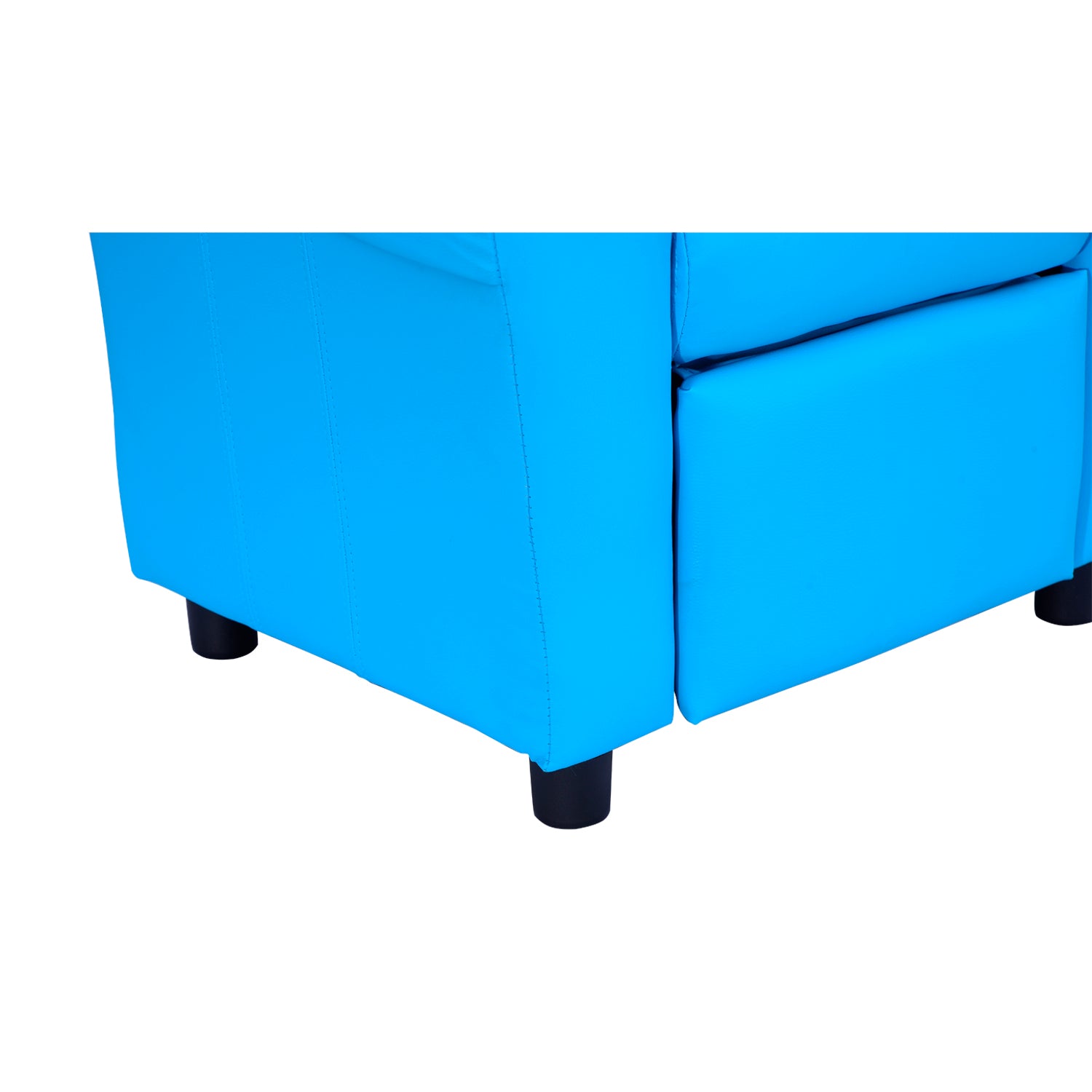 Kids Children Recliner Lounger Armchair Games Chair Sofa Seat PU Leather Look w/ Cup Holder Blue