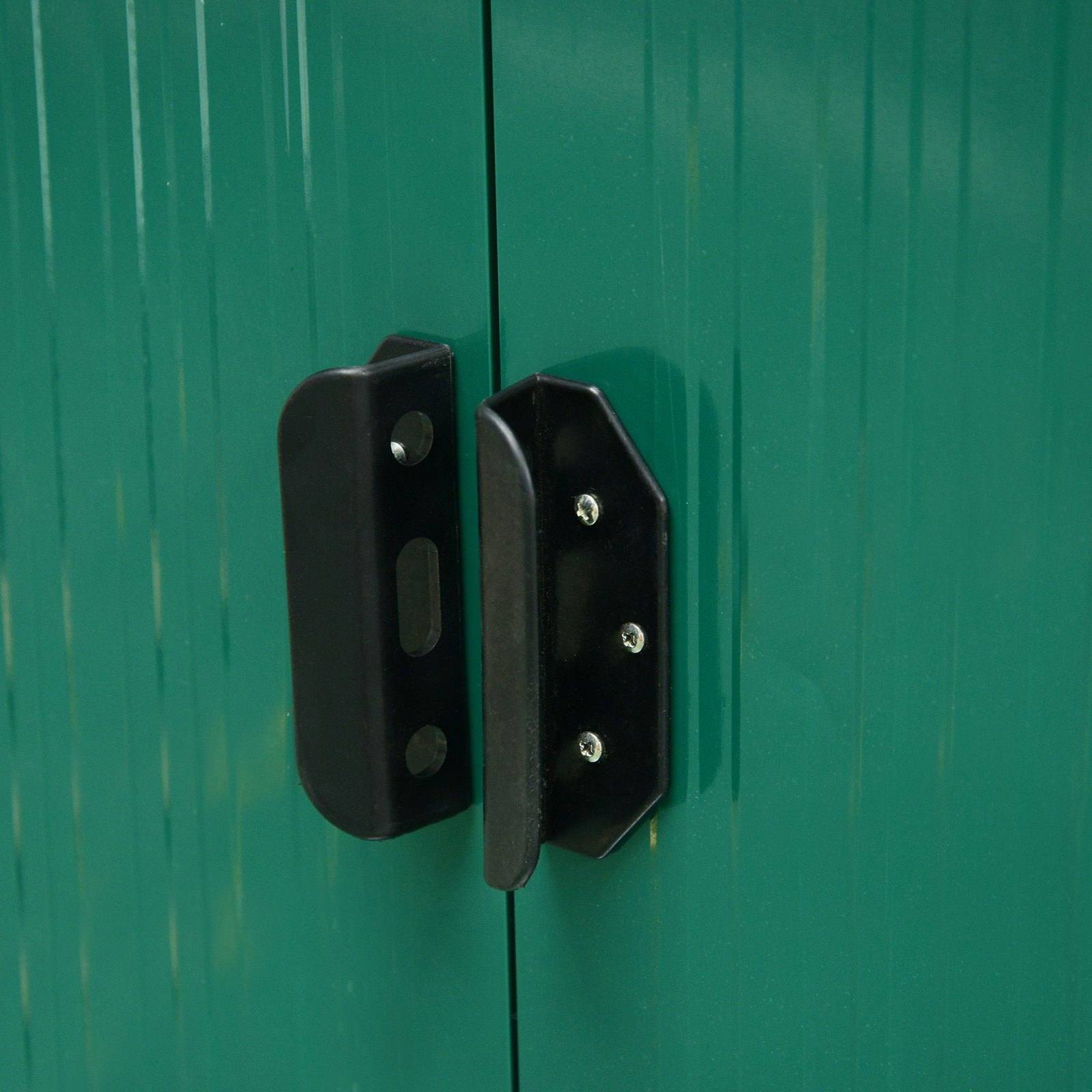 This Outsunny outdoor storage shed is a safe and protective way for keeping tools, equipment and outerwear stored. This corner garden shed is also spacious enough as a bike storage shed for the outdoor adventurers. Made from corrugated steel, the galvanised shed is strong, fitted with a sloped shed to prevent rainwater building up. Two clear front panels allow sunlight to drench through - outdoor sheds easy to see inside. Complete with two lockable sliding doors to enter and leave with ease.