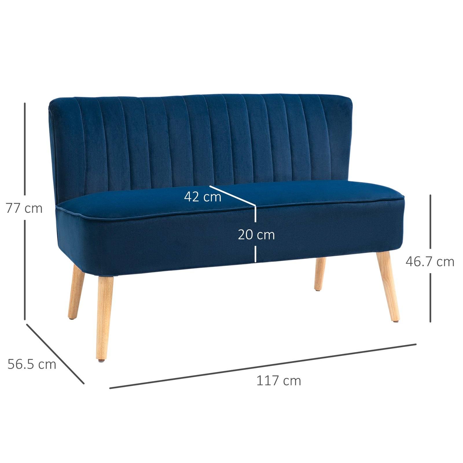 This minimalist two-seater sofa from HOMCOM is the perfect spot for the home and office. The extra-wide seat gives you plenty of room to sit comfortably. Solid wood structure with reinforced wood legs ensures stability and durability. Thick foam for comfort, with soft upholstery for easy cleaning. A stylish addition you'll love bringing into your home and beyond.