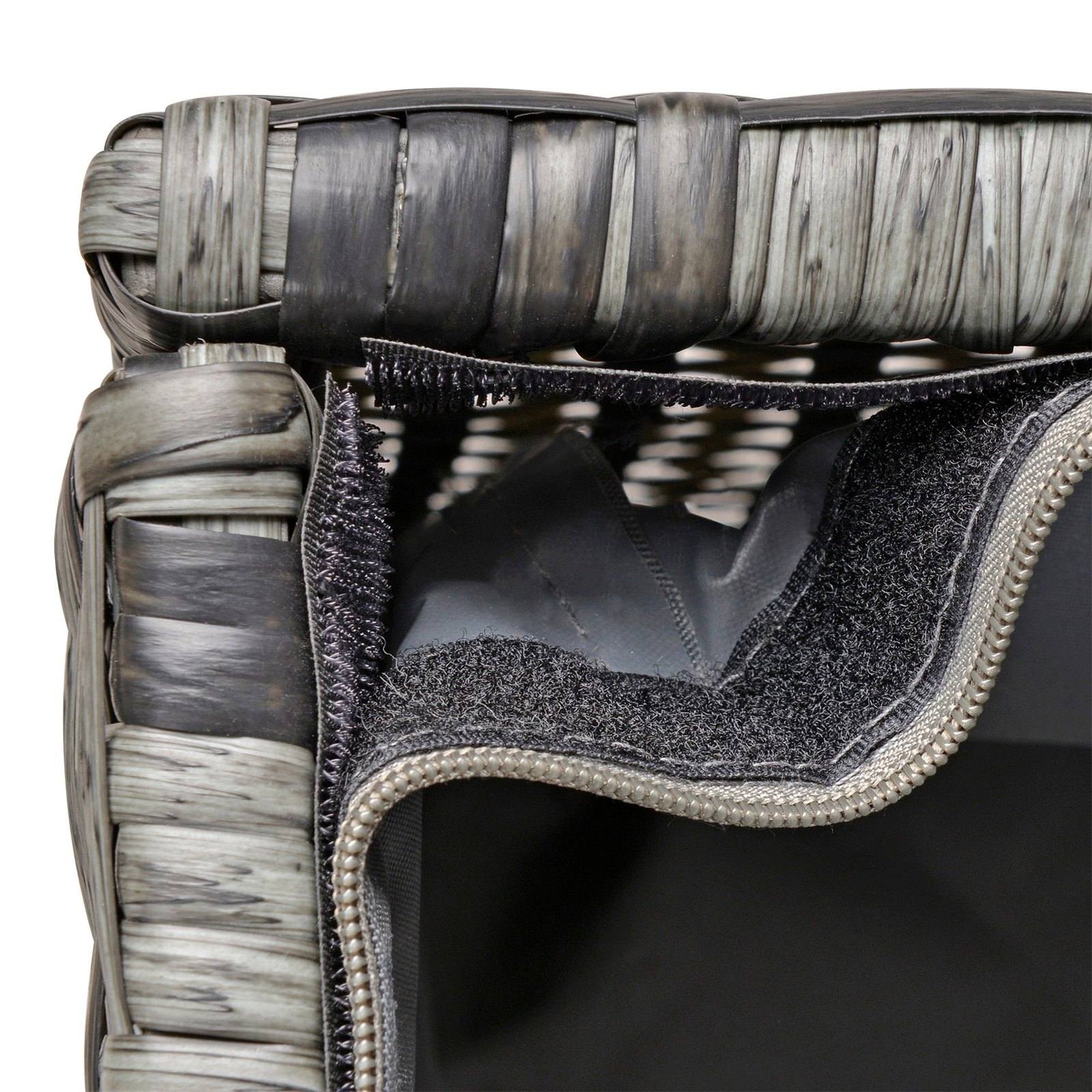 - Color: Mixed Grey wicker, Grey fabric, Grey Wood grain plastic