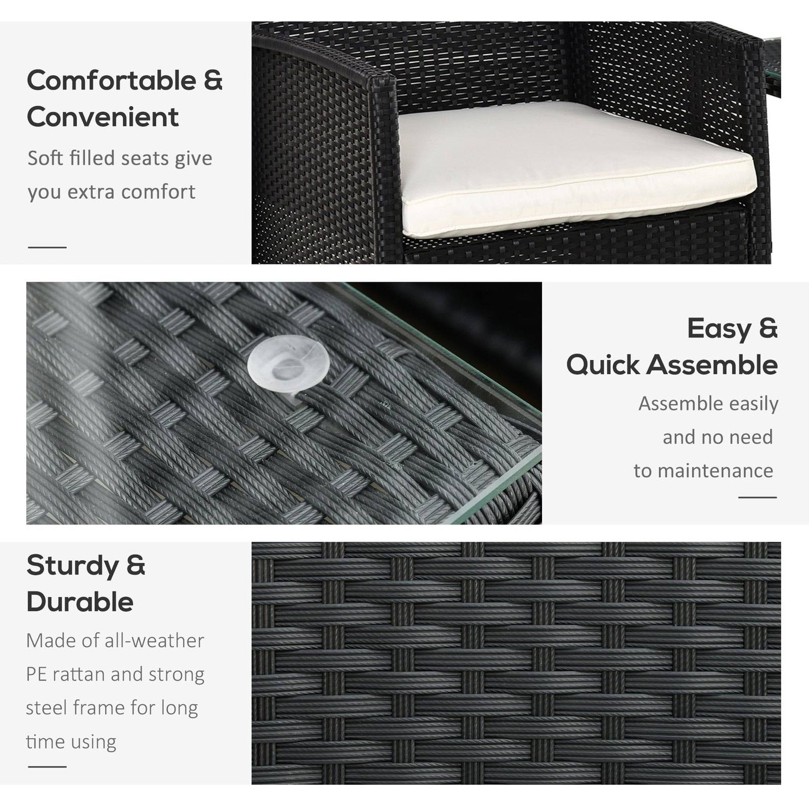 Outsunny 2-Seater Pe Rattan Side Table & Armchair Bistro Set Jack And Jill Seat With Pillows Black