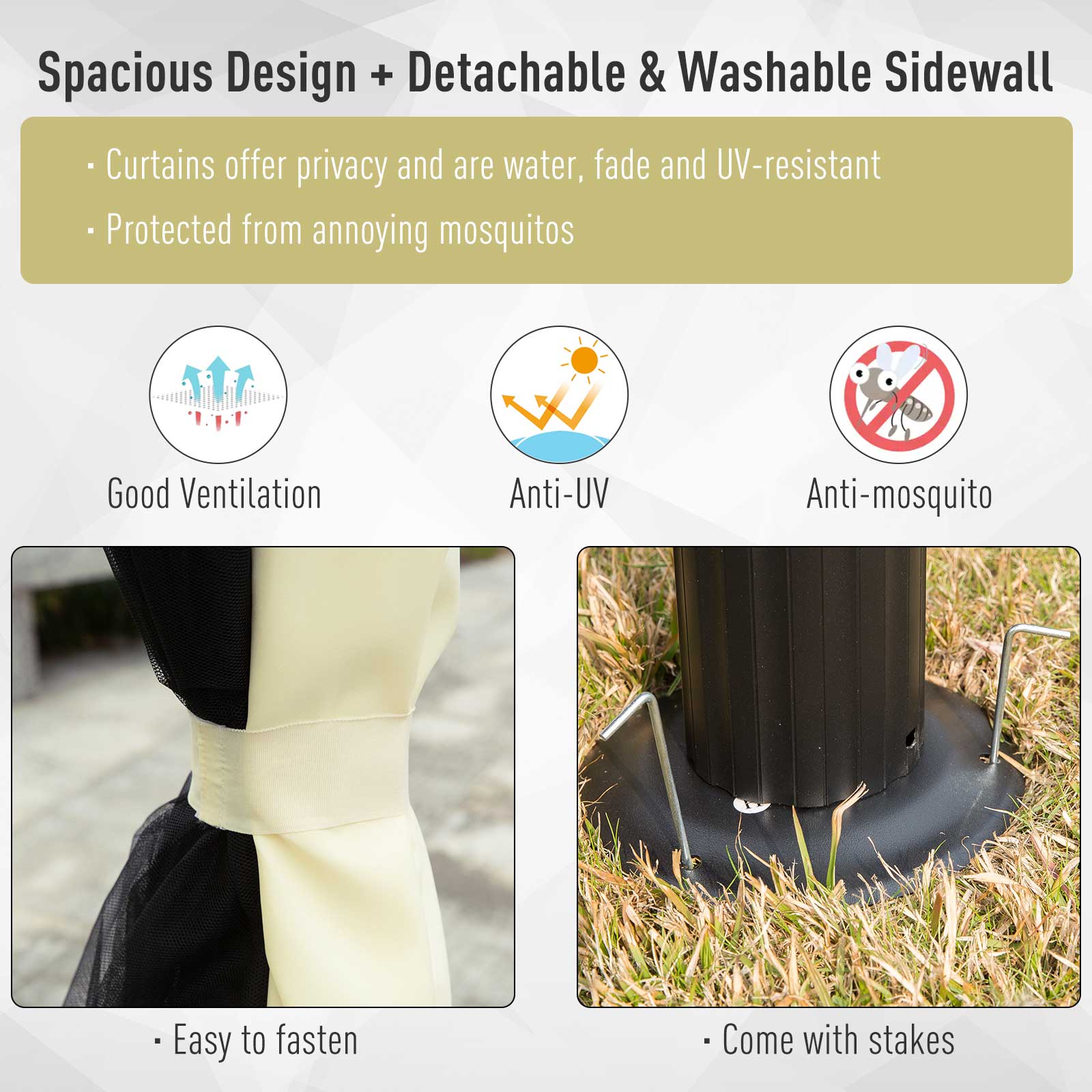 Bring life back to your Gazebo with our 4 x 3m gazebo with sides. It will provide your family and your friends comfort and cool. The 180g water resistant polyester cloth fabric and durable rust-resistant power-coated aluminium alloy frame of the garden pavilion ensure years of use. 8 ground stakes are included for securing your frame to the ground and the canopy top has 8 built-in drainage holes that prevent water from pooling at the top.